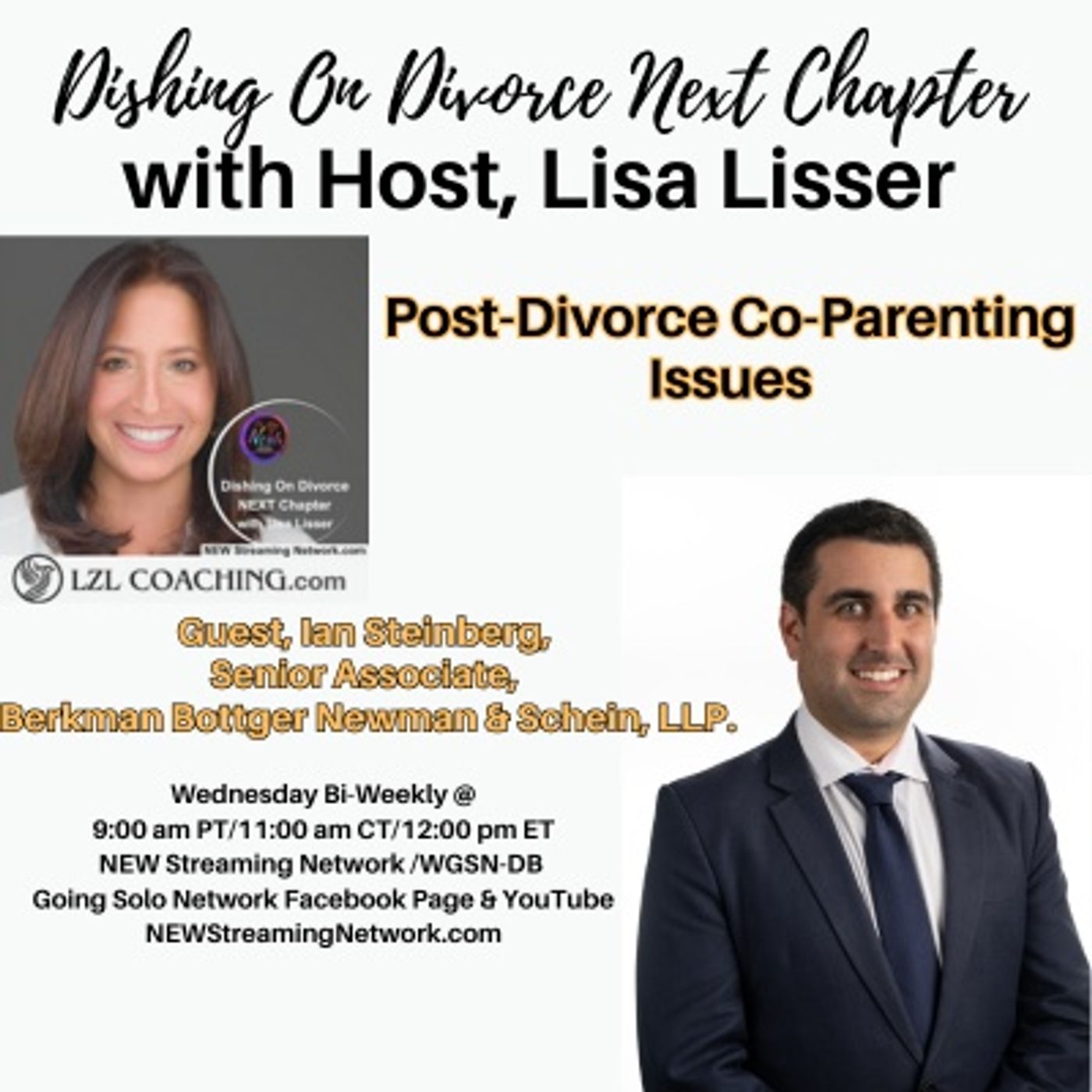 Welcome to Dishing on Divorce Next Chapter on NEWStreamingNetwork.com! In this episode, host Lisa Lisser sits down with Ian Steinberg, Senior Associate at Berkman Bottger Newman & Schein, LLP, to discuss the complex challenges of post-divorce co-parenting. Together, they explore key strategies for navigating these issues and maintaining healthy communication between co-parents. Don't miss this insightful conversation aimed at helping you move forward after divorce.