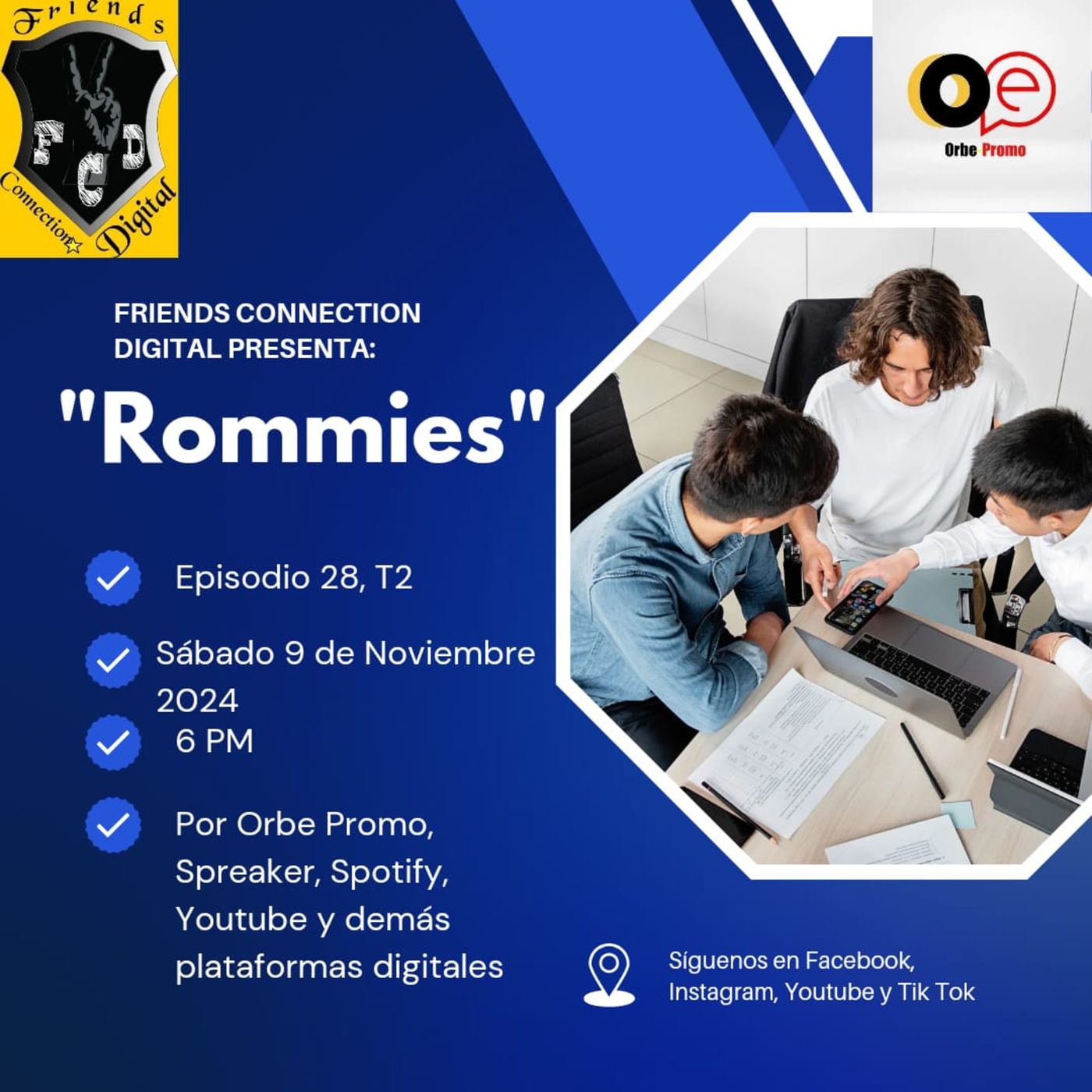 Podcast de la SEGUNDA TEMPORADA del programa de radio de Friends Connection Digital, de Tony Narez, transmitido por Orbe Promo MÉXICO, el SÁBADO 9 DE NOVIEMBRE DEL 2024. SINOPSIS: ¿Te ha surgido la idea de vivir con un "rommie"? Toma en cuenta nuestros consejos para que tu decisión sea la más acertada. Acompañados de la mejor música del momento.