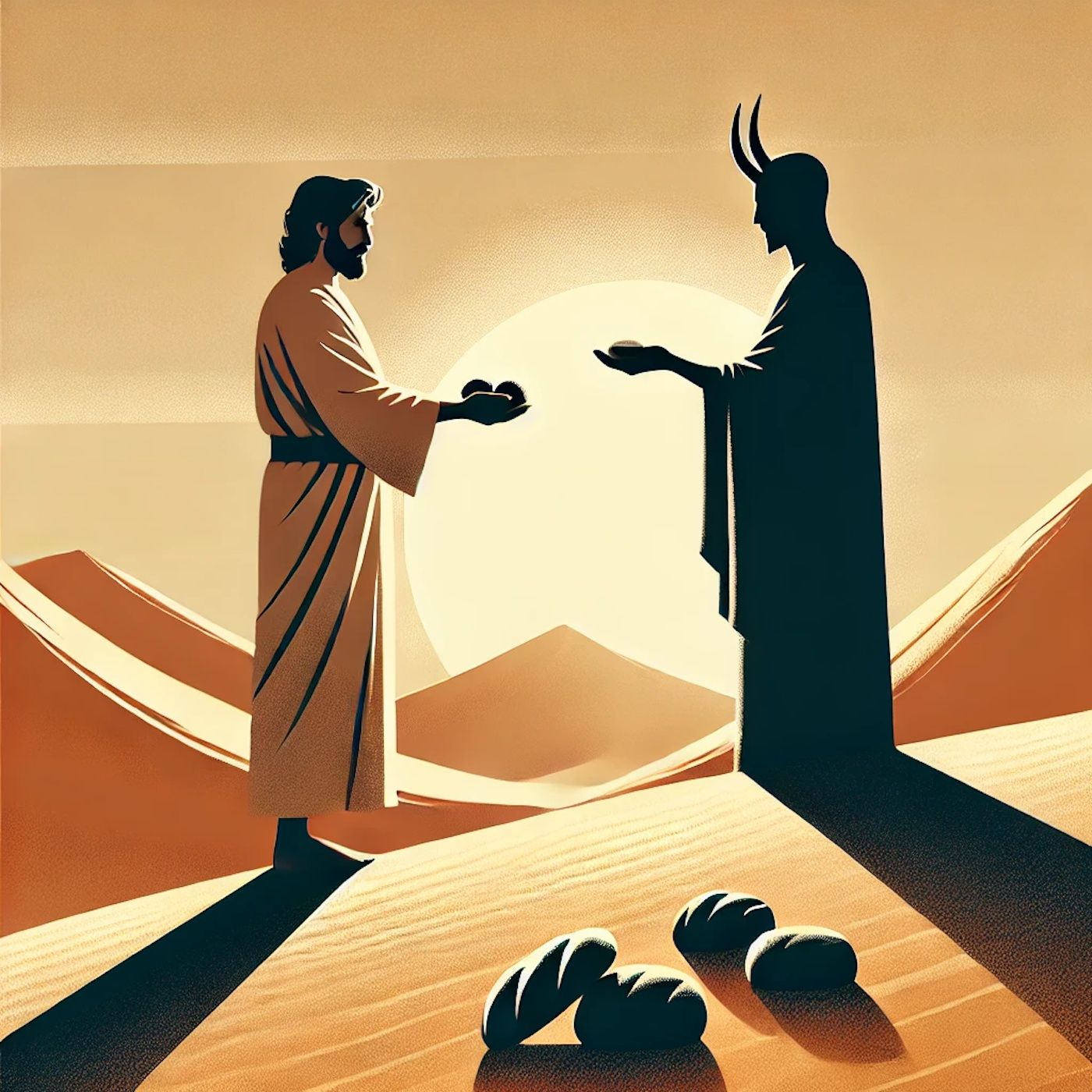 Jesus is starving after 40 days in the desert, and Satan tempts Him with bread. But Jesus fires back with Scripture—Deuteronomy 8:3.