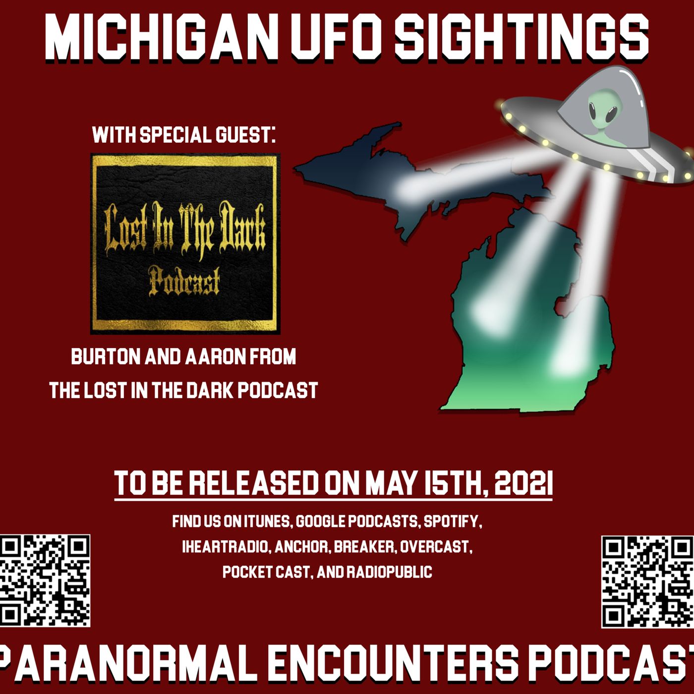 In this episode we welcome Burton and Aaron from the Lost in the Dark podcast. THIS IS A LONG EPISODE coming in at about 3 hours! We talking heavy metal music, UFOs, the paranormal and that strange place where they all intersect. Great conversation with two great guys. If you like heavy/extreme metal make sure you check out Aaron's band Bog Wraith on Facebook: https://www.facebook.com/BogWraithMI Check out their Lost in the Dark podcast: https://podcasts.apple.com/us/podcast/lost-in-the-dark-podcast/id1551578149 Help support the podcast and we'll give you a shout out on the podcast! Check it out here: anchor.fm/mi-ufo-sightings Our new public Facebook page: https://www.facebook.com/MiUFOSPE News: Terry Lovelace will be on the podcast. Be looking for that release on May 29, 2021! Contact in the Desert will be June 25 - 28! Go to contactinthedesert.com for details. WWJ 950 UFOs in the news: https://www.audacy.com/wwjnewsradio/news/local/michigan-reports-12-ufo-sightings-in-2021?dfpvars%5Bapp%5D=true&fbclid=IwAR3i6D2gXXF5-Nm-kqqElFOb4xYy70t8a-UI5jc1ljNBN7dgikcUs7jJ1jY Shout outs: Kosmographia - The Official Randall carlson Podcast; The Midnight Truckstop; and The Lost in the Dark podcast. Find these podcast on your favorite podcast platform. --- Support this podcast: https://podcasters.spotify.com/pod/show/michiganufos/support