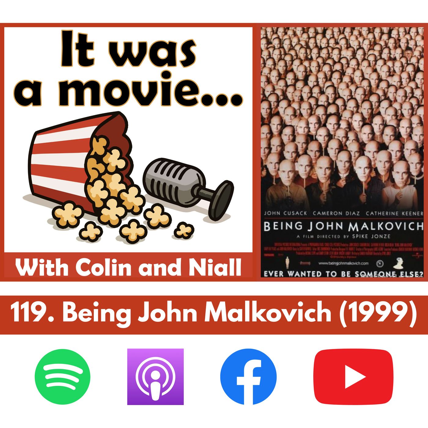 🎬 Being John Malkovich (1999) – Random Movie #342This week, we review Being John Malkovich (1999), Spike Jonze’s wildly inventive....thing...that blends surrealism with sharp social satire. John Cusack stars as a struggling puppeteer who discovers a secret portal into the mind of actor John Malkovich—yes, the real one. With a stellar cast including Cameron Diaz and Catherine Keener, this genre-defying film explores identity, obsession, and what it means to literally walk in someone else’s shoes (or skull).Picked from Metacritic’s All-Time Movie List—if you found a doorway into someone else's mind… would you peek, take control, or shut it forever? Listen now to find out!Join Colin & Niall as we embrace the weird, the wonderful, and the downright awful of cinema!Contact us: itwasamoviepodcast@gmail.comSpotify: It was a movie..Spotify pageFollow, rate & review us here:https://linktr.ee/itwasamovieYoutube: It was a movie channel...Facebook: https://www.facebook.com/itwasamovieInstagram: https://www.instagram.com/itwasamoviepodcast/X: https://x.com/itwasamoviepodTikTok clips & highlights:https://www.tiktok.com/@itwasamoviepodSee all our ratings & reviews: Google SpreadsheetIMDb List: IMDb | Letterboxd: Letterboxd