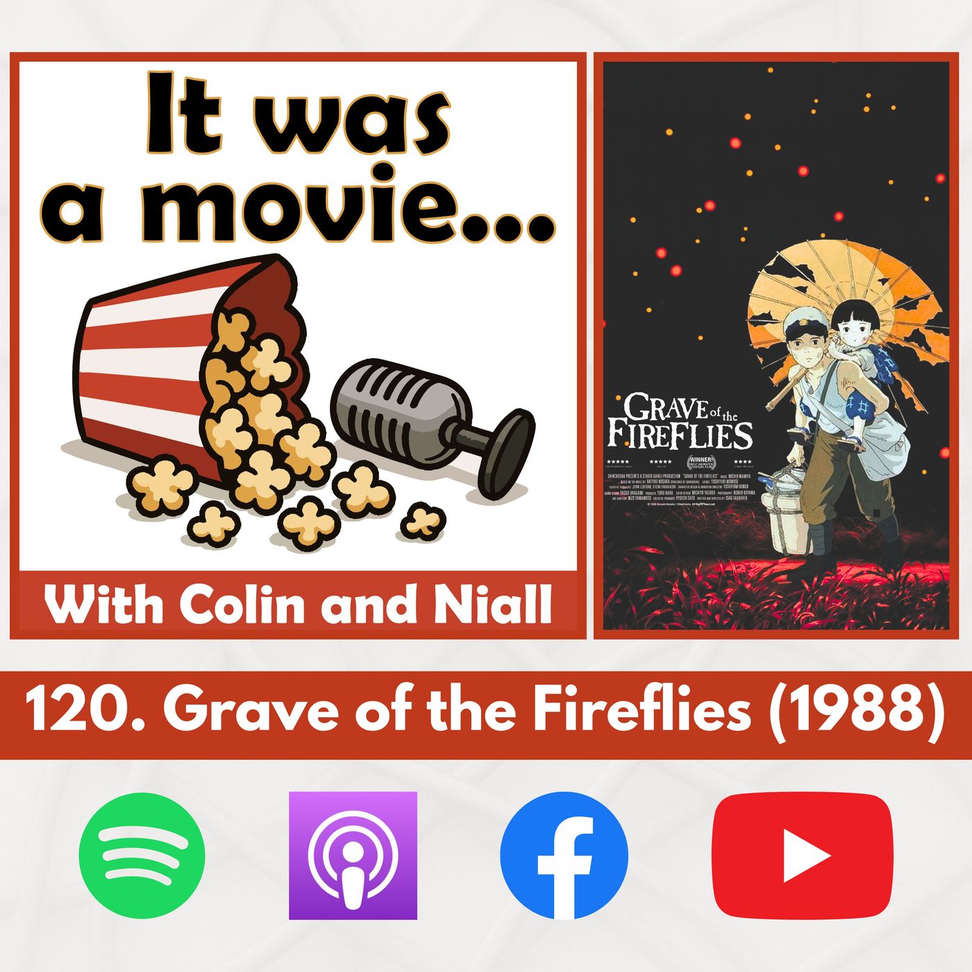 Grave of the Fireflies (1988)Movie 120 on Metacritic’s all time movie list. This week, we review Grave of the Fireflies (1988), Isao Takahata’s devastating war-time animated drama from Studio Ghibli. Tsutomu Tatsumi and Ayano Shiraishi voice Seita and Setsuko, two siblings struggling to survive in the aftermath of the firebombing of Kobe during World War II. With harrowing scenes of loss, resilience, and the collapse of innocence, this film raises haunting questions about the human cost of war and the fragility of childhood. If this is a “cartoon,” why are we crying into our popcorn before the opening credits finish? Listen now to find out!Join Colin & Niall as we embrace the weird, the wonderful, and the downright awful of cinema!