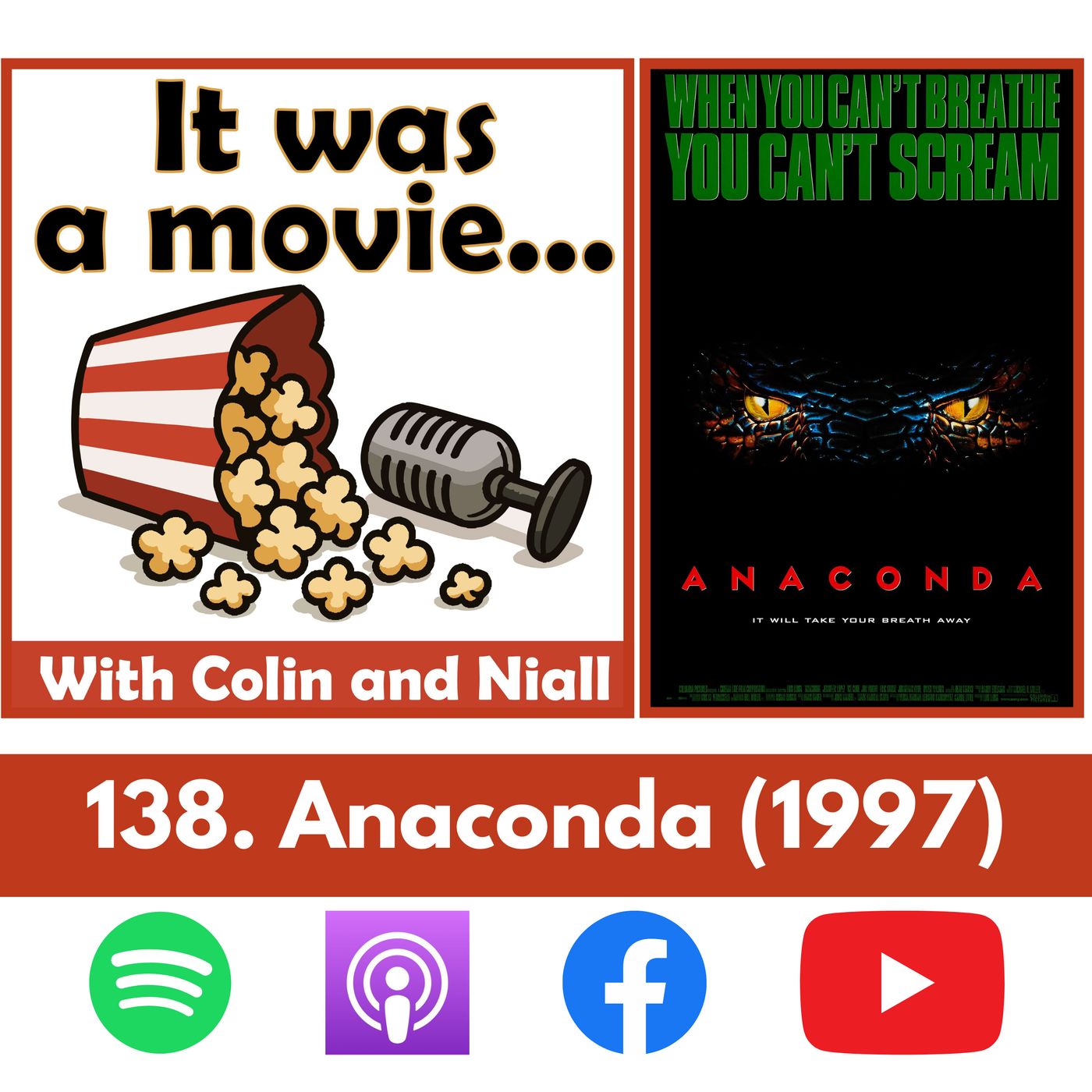 This week, we review Anaconda (1997), Luis Llosa’s action-packed jungle horror-thriller that slithers into creature feature territory with a monstrous appetite. Jennifer Lopez and Ice Cube star as members of a documentary film crew who find themselves hunted by a giant, man-eating snake deep in the Amazon rainforest. With Jon Voight delivering an unforgettably unhinged performance as a snake-obsessed poacher, the film blends campy suspense, jungle survival, and B-movie terror into a cult classic adventure.Is Anaconda a cold-blooded classic or just a hiss-terical misfire? Listen on to find out!Movie 15015 on Metacritic’s all time movie list.Join Colin & Niall as we embrace the weird, the wonderful, and the downright awful of cinema!Contact us: itwasamoviepodcast@gmail.comSpotify: It was a movie..Spotify pageFollow, rate & review us here:https://linktr.ee/itwasamovieYoutube: It was a movie channel...Facebook: https://www.facebook.com/itwasamovieInstagram: https://www.instagram.com/itwasamoviepodcast/X: https://x.com/itwasamoviepodTikTok clips & highlights:https://www.tiktok.com/@itwasamoviepodSee all our ratings & reviews: Google SpreadsheetIMDb List: IMDb | Letterboxd: Letterboxd