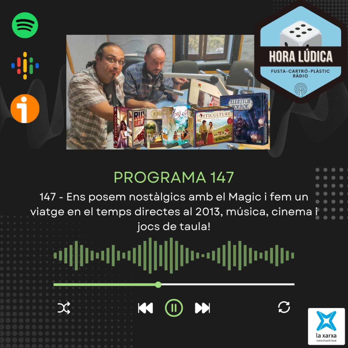 Ja tenim el 147! En @jcreigosa i @Pobins es posen nostàlgics parlant de Magic: The Gathering i agafen la màquina del temps per fer un cop d'ull a com estava el panorama cultural l'any 2013! Hora Lúdica és un programa realitzat des de Ràdio Arenys per la Xarxa de Comunicació Local de Catalunya. Ens podeu escoltar a la vostra ràdio local i a totes les plataformes de podcast. Troba'ns a twitter i instagram @horaludica i deixa els teus comentaris a ivoox o al correu horaludica@radioarenys.cat Presentat per Juan Carlos Reigosa i Javi Rodríguez.🎲🎙📻🎧