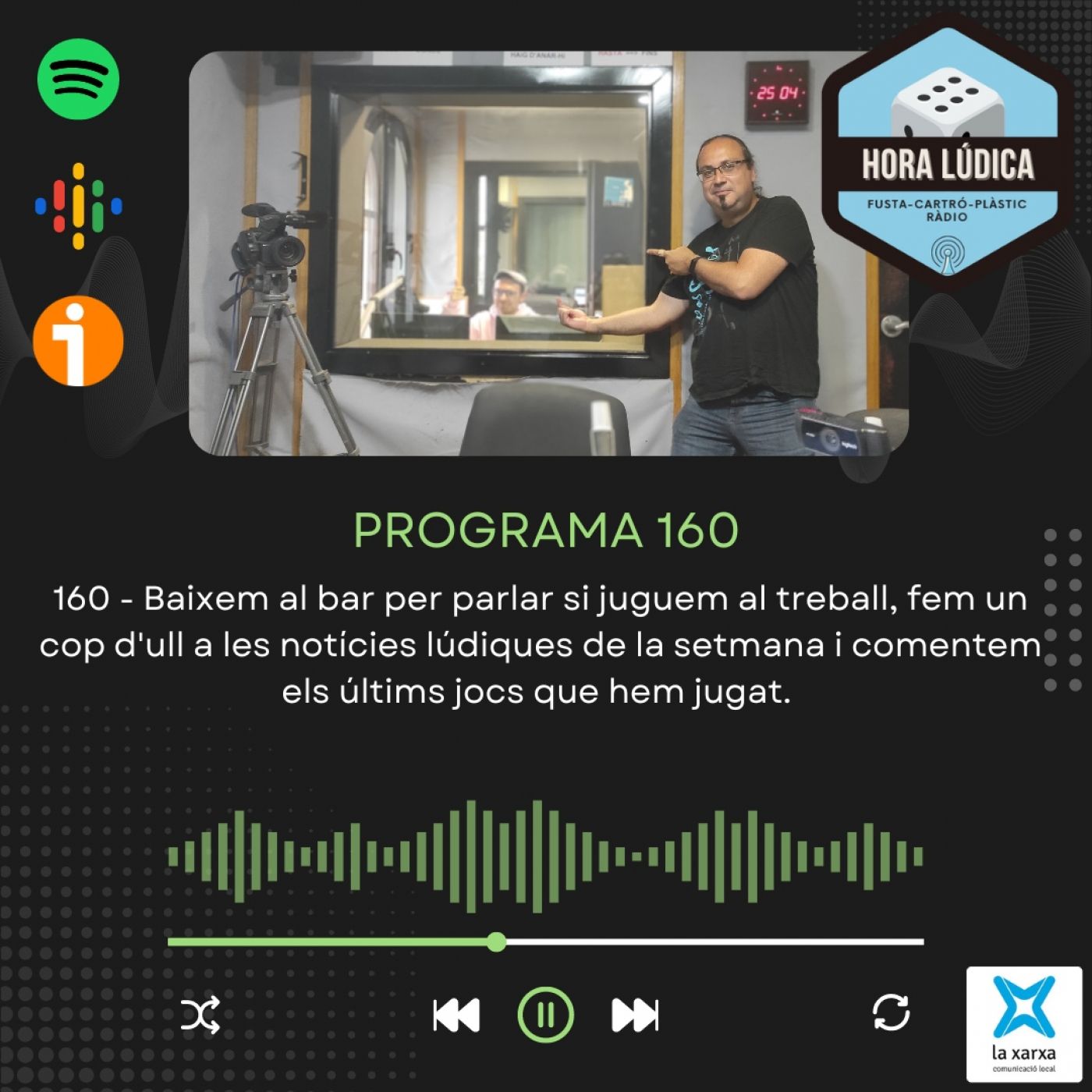Tornem a l'estudi una setmana més! Al bar parlem de la gent que juga a la feina, aficionats i aficionades que aprofiten l'hora del descans o de dinar per treure un joc. Fem un cop d'ull a les notícies lúdiques més destacades de la setmana i també a alguna polèmica... i finalment trenquem la norma i... parlem de jocs! comentem les darreres partides: Scarface 1920, Heat, Quoridor i Photosynthesis... Hora Lúdica és un programa realitzat des de Ràdio Arenys per la Xarxa de Comunicació Local de Catalunya. Ens podeu escoltar a la vostra ràdio local i a totes les plataformes de podcast. Troba'ns a: Ràdio Barberà Ràdio Municipal Terrassa Mataró Ràdio Constantí Ràdio Ona La Torre TV Badalona La Veu de Sant Joan Ràdio Tàrrega Cugat Media Radio Sant Andreu Ràdio Montornès Ràdio Sant Esteve Ràdio Sant Feliu Castellet Ràdio Estem a twitter i instagram @horaludica i deixa els teus comentaris a ivoox o al correu horaludica@radioarenys.cat Presentat per Juan Carlos Reigosa i Javi Rodríguez.🎲🎙📻🎧