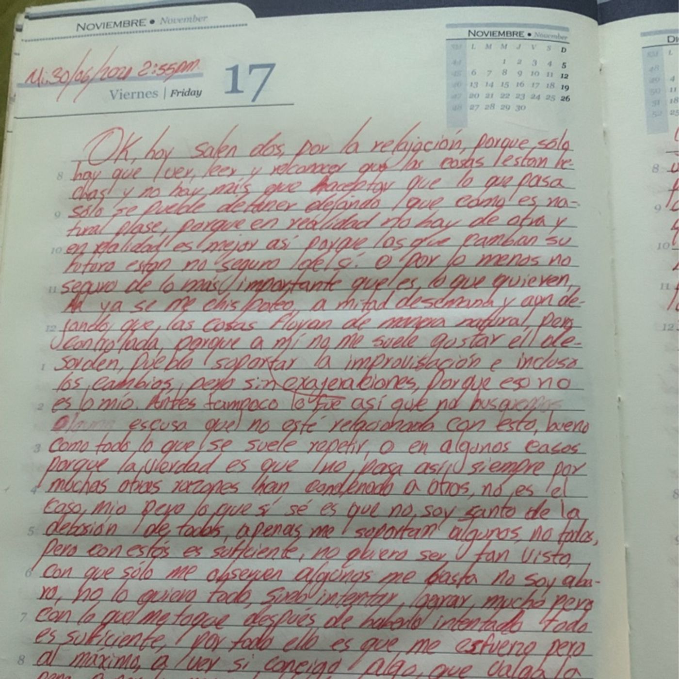Pero wuao, no se detenía a pensar que de quincena a quincena se juntaban dos meses, bueno tres meses y más, y eso aún no lo es todo ella y sus análisis, en esos planes no se contaba a sí mismo, a lo que pudiera pasar, se quería apuntar a la universidad pero como lo hacía ? Ya eso era un gasto que había que costear casi era enero y las inscripciones eran a penas en noviembre o diciembre y ya los planes para esa fecha estaban hecho, a qué se refieren con vivir el aquí y el ahora, a qué le llaman fragmentar los problemas en pequeñitos y con ellos avanzar, que le llaman planear, porque eso no eran planes de vida, eso no se le podía llamar vivir, e incluso a eso ni siquiera sé el podía llamar solución, porque solución a qué si todo esto se podía volver a repetir más adelante, quien quita que se vuelvan a pedir préstamos, a que la casa vuelva a empeorar, a qué luego de una puerta o de una batería, sea el sin, o quién sabe si un ciclón o una catástrofe de nuevo vuelva a parecer, de que haya de nuevo otra pandemia y tenga que regresar a casa sin trabajo sin dinero sin nada, que habría pasado con esas horas de empleos, qué pasaría con los problemas ya solucionados, diga, solo quedaría la satisfacción de haber hecho algo de haber colaborado con su granito de arena, eso no es suficiente, ella lo sabía, se estaba haciendo la que no e incluso solo estaba ignorando el hecho, pero y qué pasa sí ella enfermaba eso también podía pasar y si alguien más enfermara y si otro más muriera, cambiaría por completo el punto de vista, cambiaría del todo la manera de pensar, pero aún así quedarían los problemas y aún peor quedaría la culpa de poder haber hecho más, la culpa y el remordimiento de no tener más que hacer y sobre todo lo que más duele que es el saber que no sé aprecio del todo lo que se tenía y que por culpa de eso ya no hay vueltas a tras, duele duele mucho pero ya no se puede hacer nada, en todo esto se sentaba a pensar, pero no había solución alguna que valiera, no había más que solucionar, era solo seguir con el plan, se diera o no era lo que había era lo que tenía que hacer gracia a Dios tenía la oportunidad de intentarlo y lo iba a lograr iba por ello, ya estaba cerca, o solo por decirlo, porque a penas empezaba a intentar.