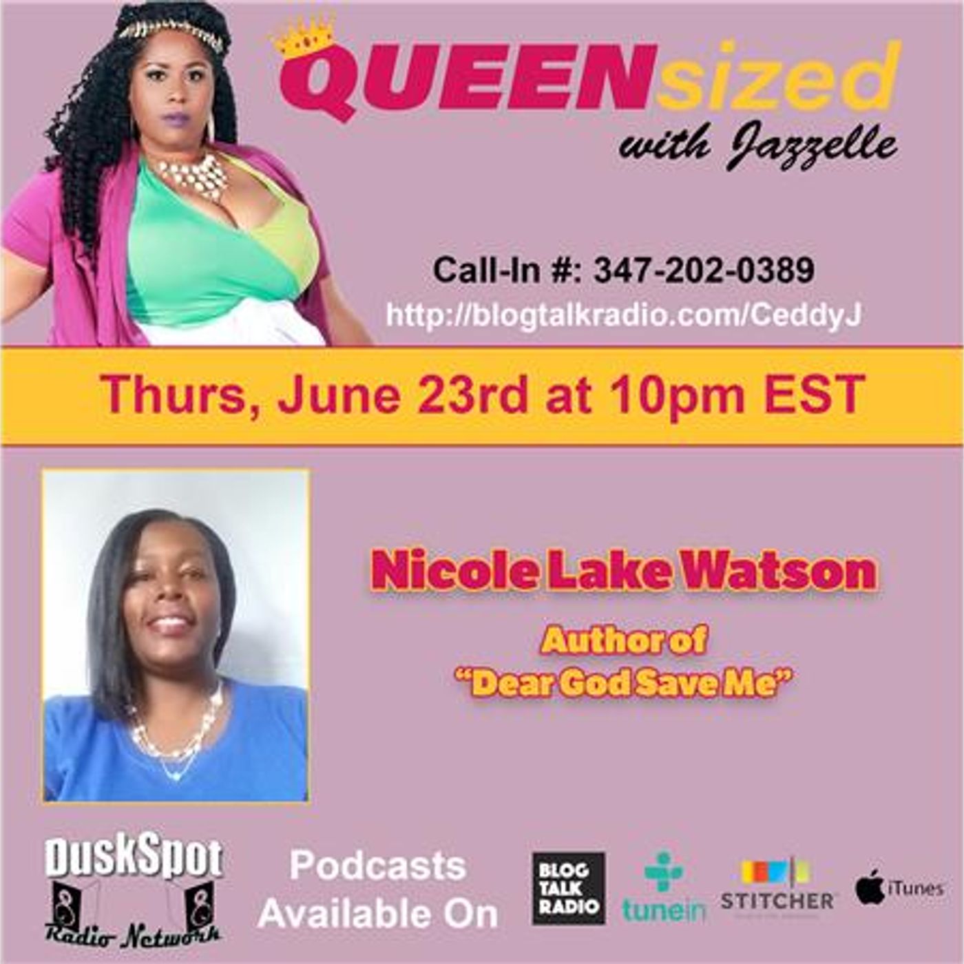 Welcome to "QUEENsized with Jazzelle," a variety podcast that covers just about everything under the sun. Guest of The Week: Nicole Lake Watson, Author of "Dear God Save Me".