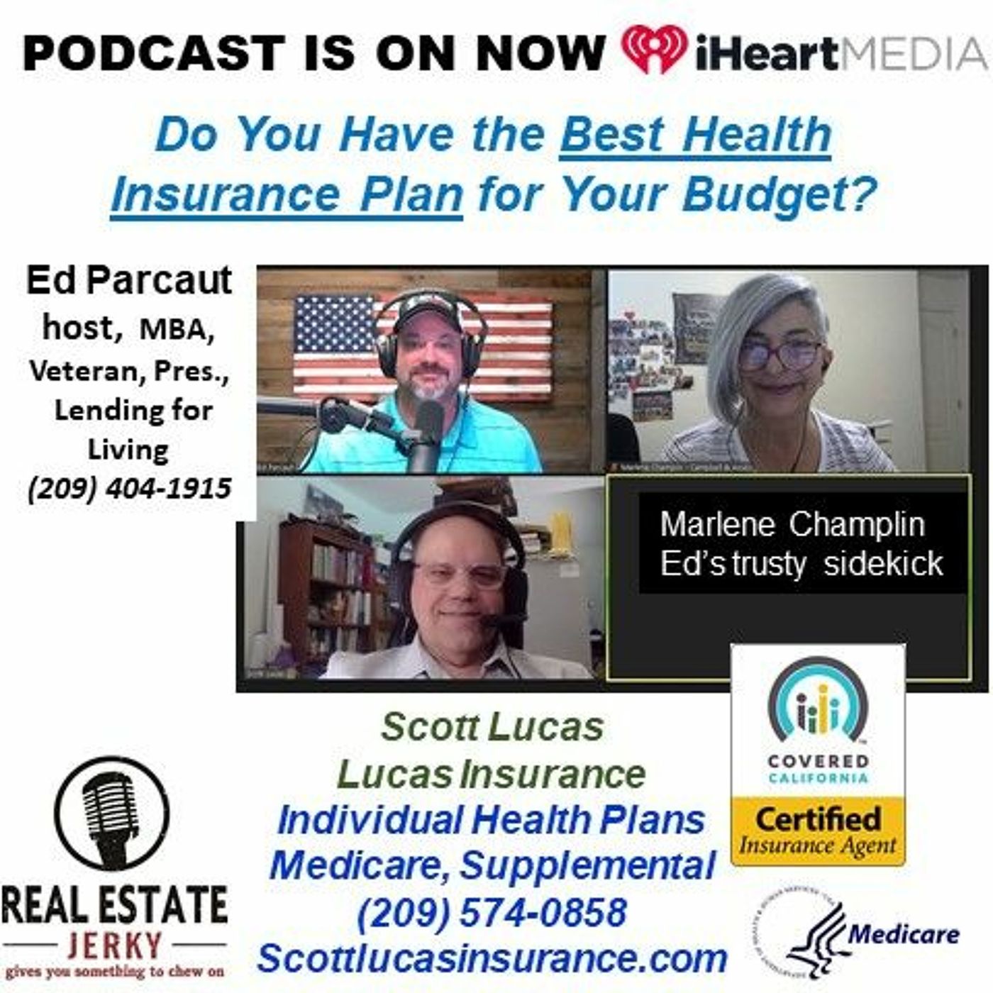Health insurance premiums and medical bills taking a big chunk out of your budget? Ed Parcaut, MBA, Veteran, President, Lending for Living and our host discusses what individuals can do to possibly lower their health insurance premiums, increase their coverages and lower their out-of-pocket with Scott Lucas, Scott Lucas Insurance, licensed insurance agent and expert at individual health insurance plans, all plans, all levels throughout the state of California! Reach out to Scott at (209) 574-0858 and Ed at (209) 404-1915. Real Estate Jerky broadcasts live every Sat. at 12n and Sun. at 10a on Power Talk 1360 KFIV
