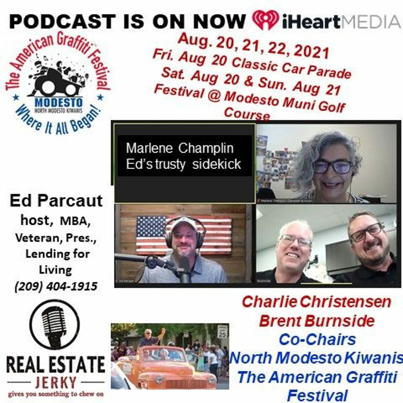 Where were you in '62? Relive the era of Classic Cars, rock-n-roll, and good, clean, fun! This weeks' guests, Co-chairs, Brent Burnisde and Charlie Christensen of the North Modesto Kiwanis Club's annual fundraiser, "The American Graffiti Festival" share all the fun coming our way including the Classic Car parade Friday, Aug. 20, the Classic Car Show, Sat. August 21 & Sun. August 22, the bands, the food, the fun and more with host, Ed Parcaut, MBA, Veteran and President, Lending for Living. Plenty to chew on, Real Estate Jerky! Broadcasts live each Sat. 12n & Sun. 10a on Power Talk 1360 KFIV and livestream too https://ihr.fm/2UJo7GZ