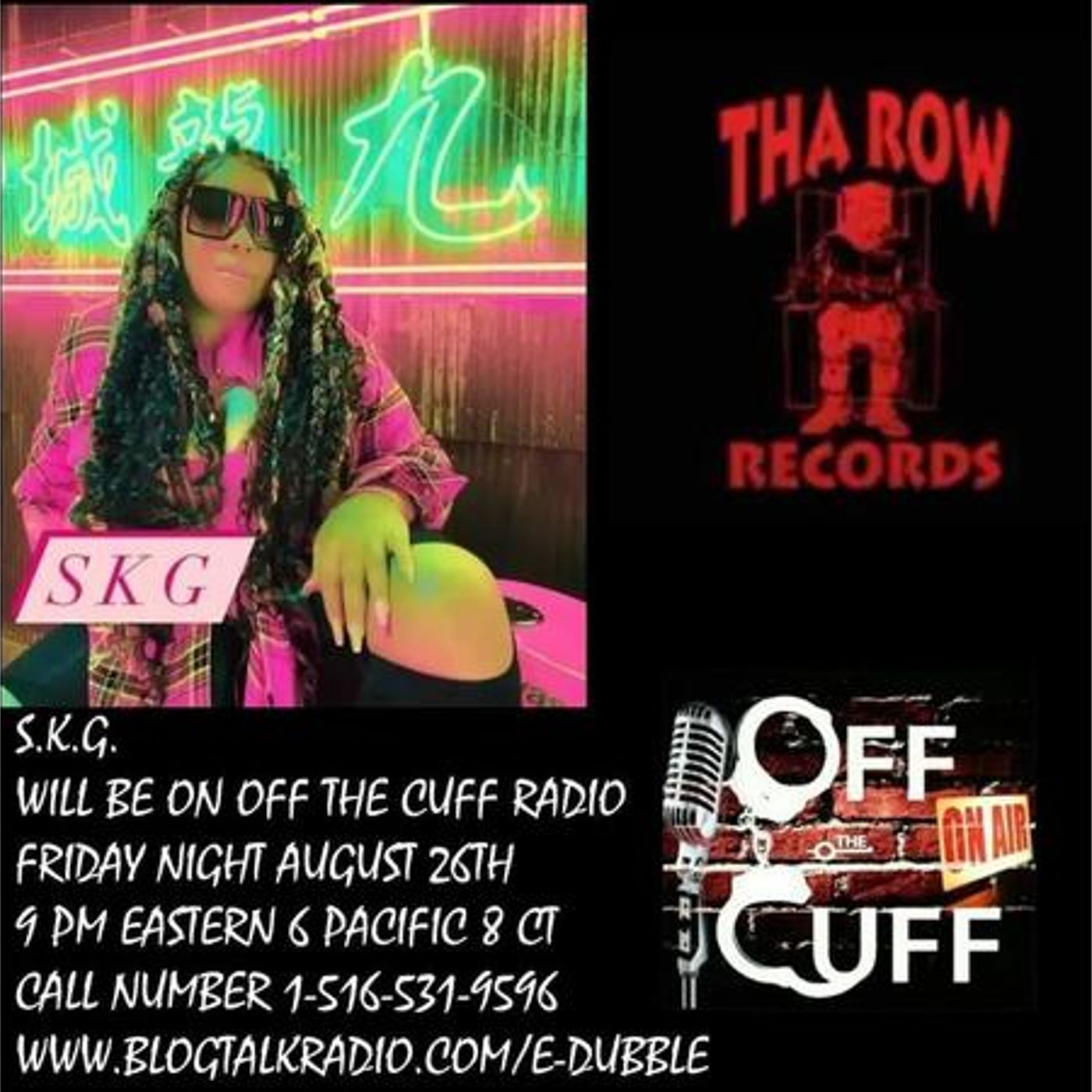 SKG returns to Off The Cuff Radio this Friday Night at 9 PM Eastern 6 Pacific 8 Ct!