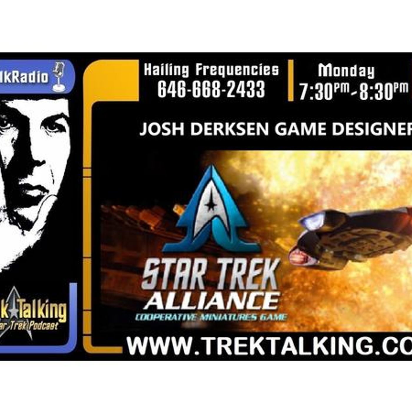 We are lucky enough to be joined by game Designer JOSH DERKSEN. He is the designer of Star Trek Alliance, a cooperative game based on Star Trek Attack Wing. Currently there are three boxes available in the Dominion War series. Box one is a Federation based game, box two is a Klingon based set and box three is a Romulans based set. All three boxes are part of a campaign and can be played together. We will also discuss the new game Star Trek Discovery: Black Alert. Call (646)668-2433 with your questions. Let's See What's Out There...ENGAGE!