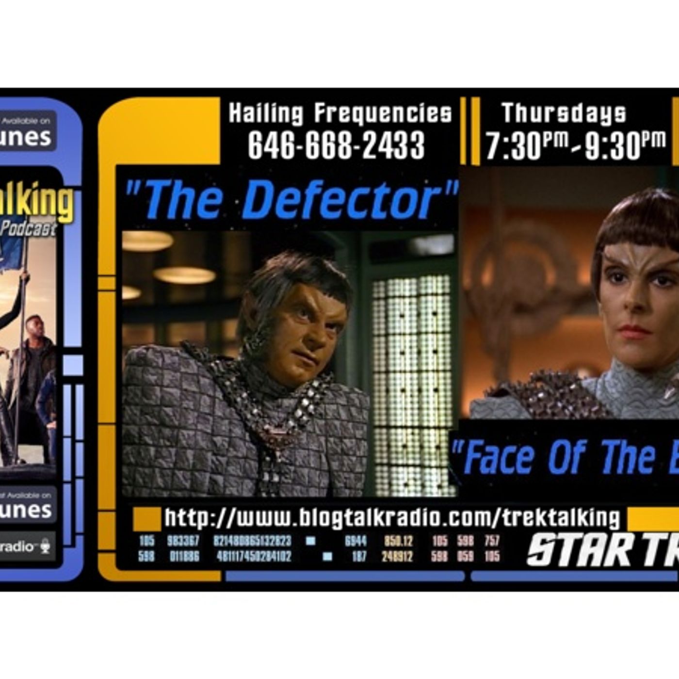 On this episode we take a look back at Star Trek The Next Generation episodes "The Defector" and "Face of the Enemy". Was that Tomalak again, Did they just mention Spock, What kind of Romulan did Troi make, and what about Admiral Alidar Jarok? We also have Star Trek News and Birthdays, phone lines will be open (646)668-2433, we have faith that you'll call.
