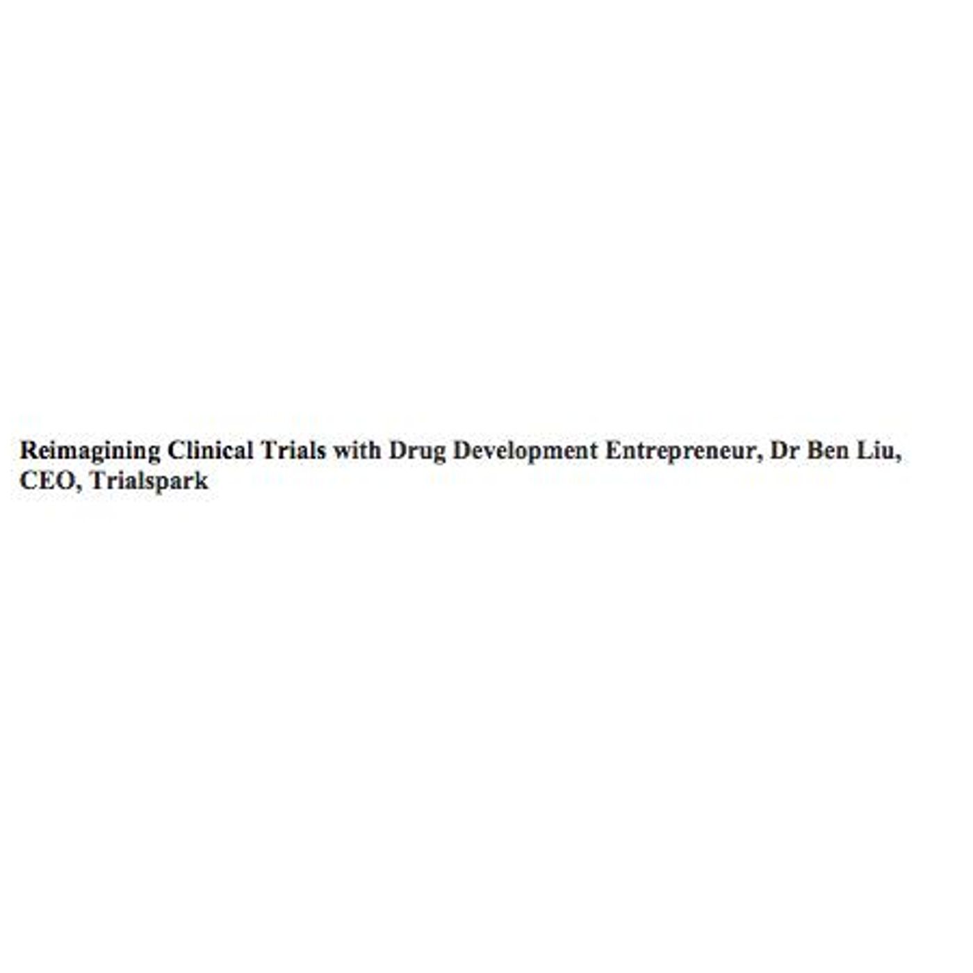 During his graduate work, Dr Benjamine Liu observed the many bottlenecks that get in the way of clinical trials slowing the development of new treatments for patients. This challenge inspired him to launch Trialspark. Trialspark partners with doctors to create FDA compliant trial sites within their existing practices (like Airbnb), unlocking the 98% of patients and doctors not involved in trials today and democratizing access to research treatments. In this podcast discussion with Ben, we discuss how to reimagine clinical trials, entrepreneurism, the rise of Trialspark and reducing the barriers for patients and investigators. Ben will be speaking at DPharm on September 26th in Boston with Dr Ulo Palm, SVP Global Drug Development Operations, Allergan on a case study to scale more efficient clinical trials. For more information about Trialspark, visit www.trialspark.com For more information about DPharm visit www.theconferenceforum.org Producer: Valerie Bowling, Executive Director, Pharma Talk Radio and DPharm