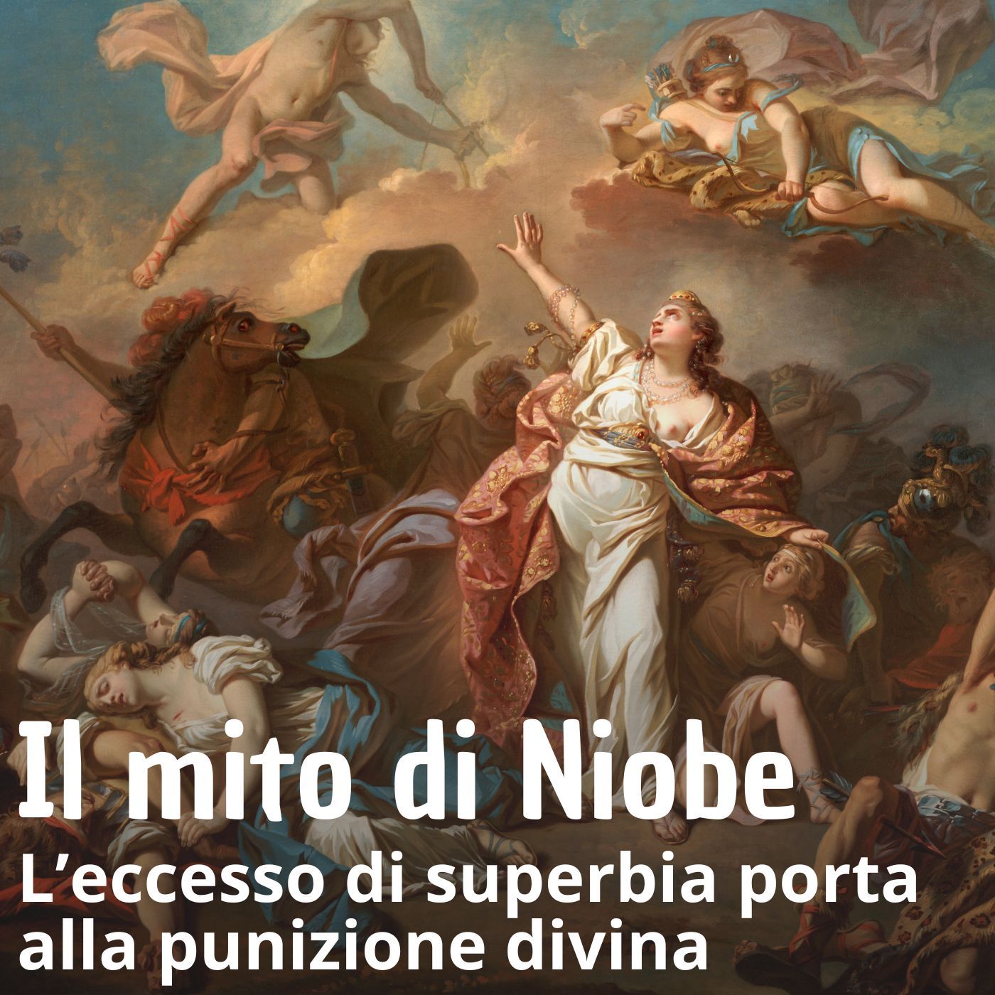 Il mito di Niobe, che si vantava di essere superiore alla dea Latona per la sua prole numerosa e fu punita con la morte di tutti i figli, è un esempio classico di come l'eccesso di superbia porti alla punizione divina. La vicenda di Niobe e dei suoi figli è una delle storie più tragiche del mito antico e viene narrata da Ovidio nel Libro VI delle Metamorfosi.