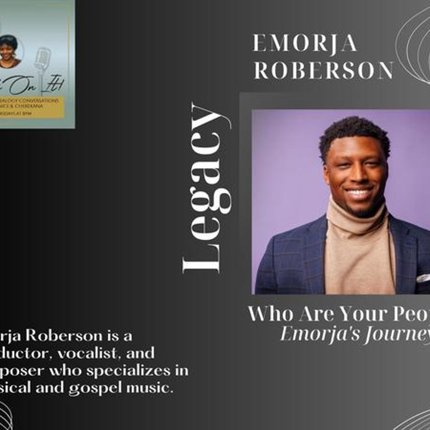 Join Janice Gilyard and Cherekana Feliciano for a conversation with Conductor, Vocalist,and Composer, Emorja Roberson regarding his journey to research, document, and share his family history. Emorja Roberson graduated from the University of North Florida with a Bachelor of Music degree in Vocal Performance, where he studied with Krzysztof Biernacki. In 2019, Roberson served as the choir director for Kathleen Battle's The Underground Railroad: A Spiritual Journey tour with the DeBartolo Performing Arts Center at the University of Notre Dame. He was awarded with the 2021 Academic Freedom Award from the Department of Africana Studies and is the recipient of the 2022 Sr. Jean Lenz Award for his leadership that promotes a more diverse, inclusive campus community for all students. BE-SPOKEN, his most recent oratorio, highlights the experiences of the Black experience through jazz, hip-hop, and gospel. The premiere included artists, such as, Anthony Walker, King Chav, HarRell D. Young, Donishisa Ballard, and Grammy-Award winner, Ledisi. In June 2022, Roberson became the first African-American to graduate with a Doctor of Musical Arts in Choral Conducting from the Sacred Music Department at the University of Notre Dame. He is now the Assistant Professor of Music and African American Studies at the Oxford College of Emory University. One of his interests is family history which certainly caught our attention! If you fail to try, you forfeit the opportunity to see your strength. If you forfeit to test your strength, you fail to grow. If you fail to grow, you will never experience the full capacity of your talent. By Emorja G. Roberson www.emorjaroberson.com