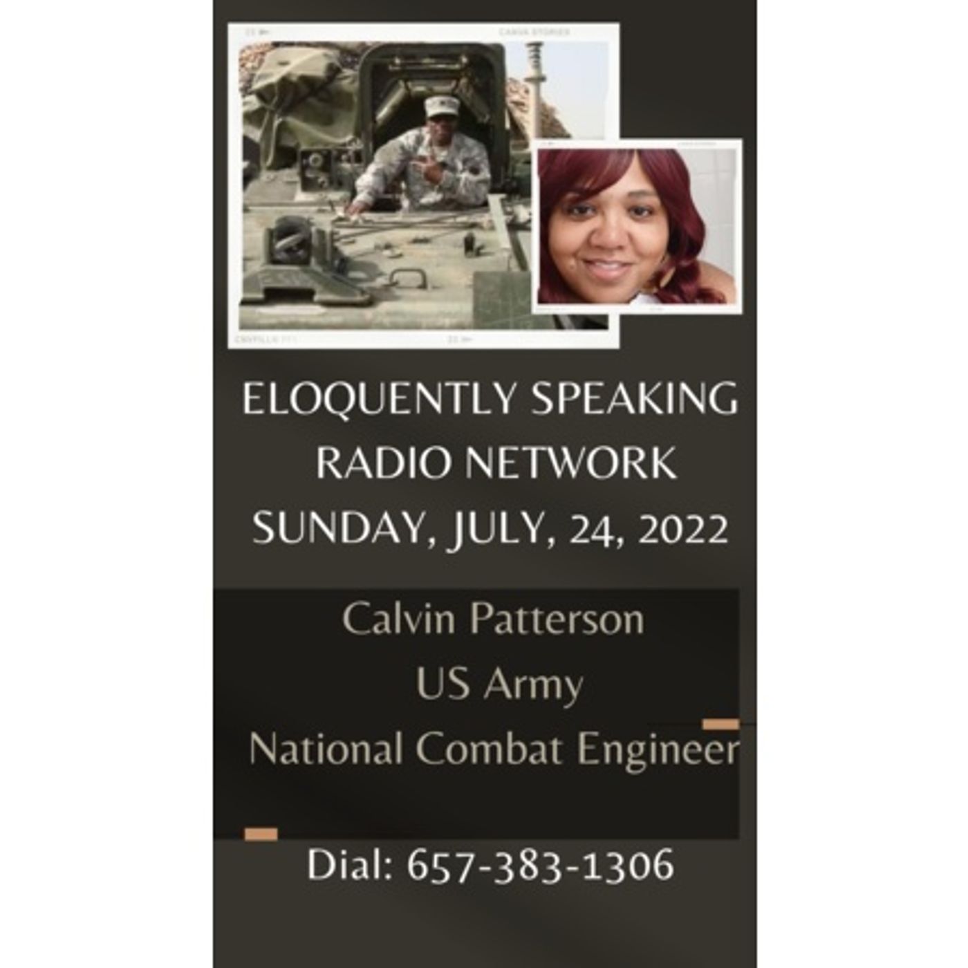 Eloquently Speaking about US ARMY NATIONAL COMBAT ENGINEER, Calvin Patterson, who is a 100% disabled veteran that has proudly served his country with a spirit of excellence. Please join this exciting and uplifting interview to learn more about this amazing man and dig this he can sing too Dial 657-383-1206 See you on the mic Sunday, July 24, 2022, at 4pm Est. This is the kick-off celebration for a new radio show that we will be collaborating with....to bring awareness and resources to veterans to help the cause.