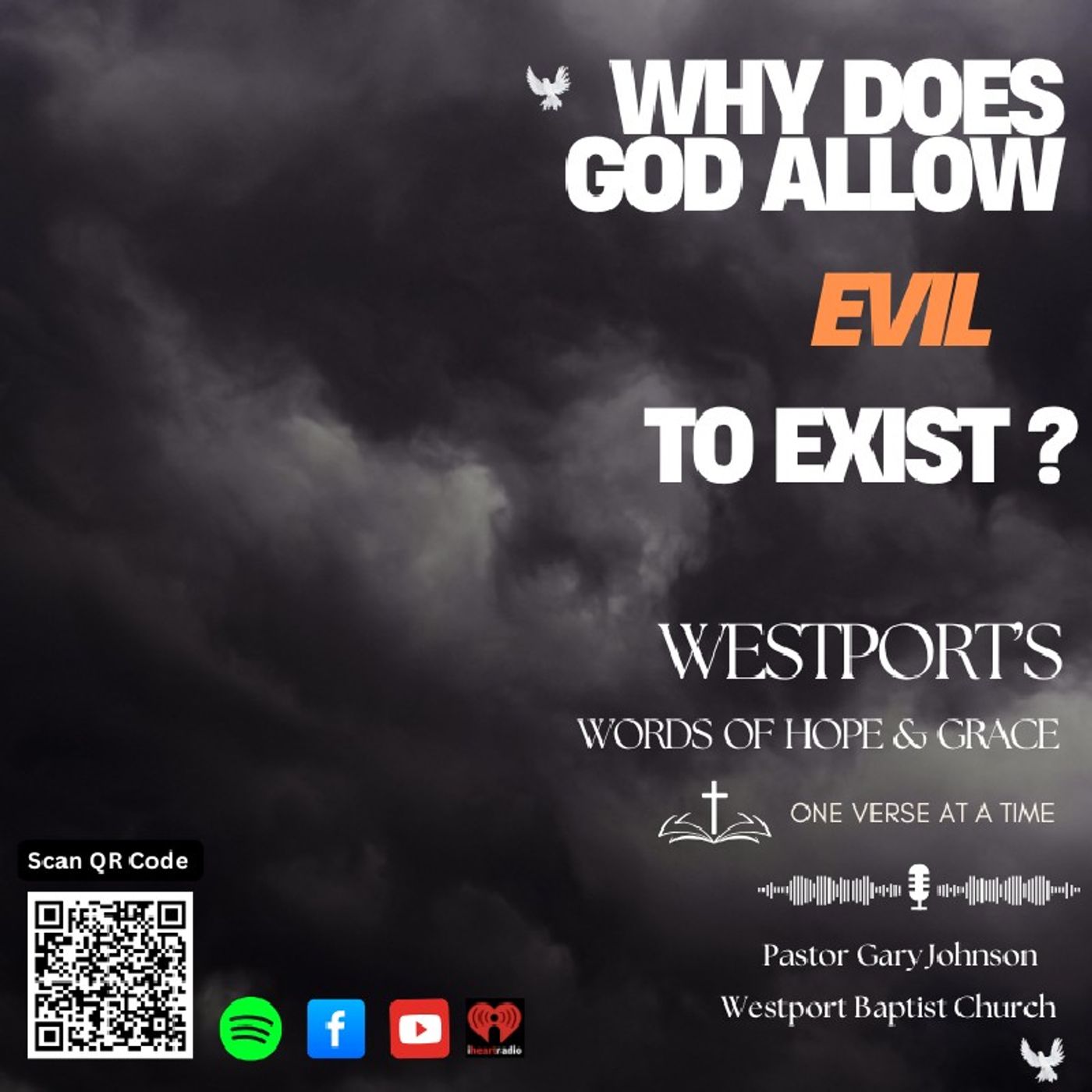 In this heartfelt episode of Westport’s Words of Hope & Grace – One Verse at a Time, we address the challenging question: "Why does God allow evil?" Drawing on Scripture, real-world statistics, and personal reflections, we see how hope and grace shine even in our darkest moments. Tune in for a message of faith, hope, and community strength.