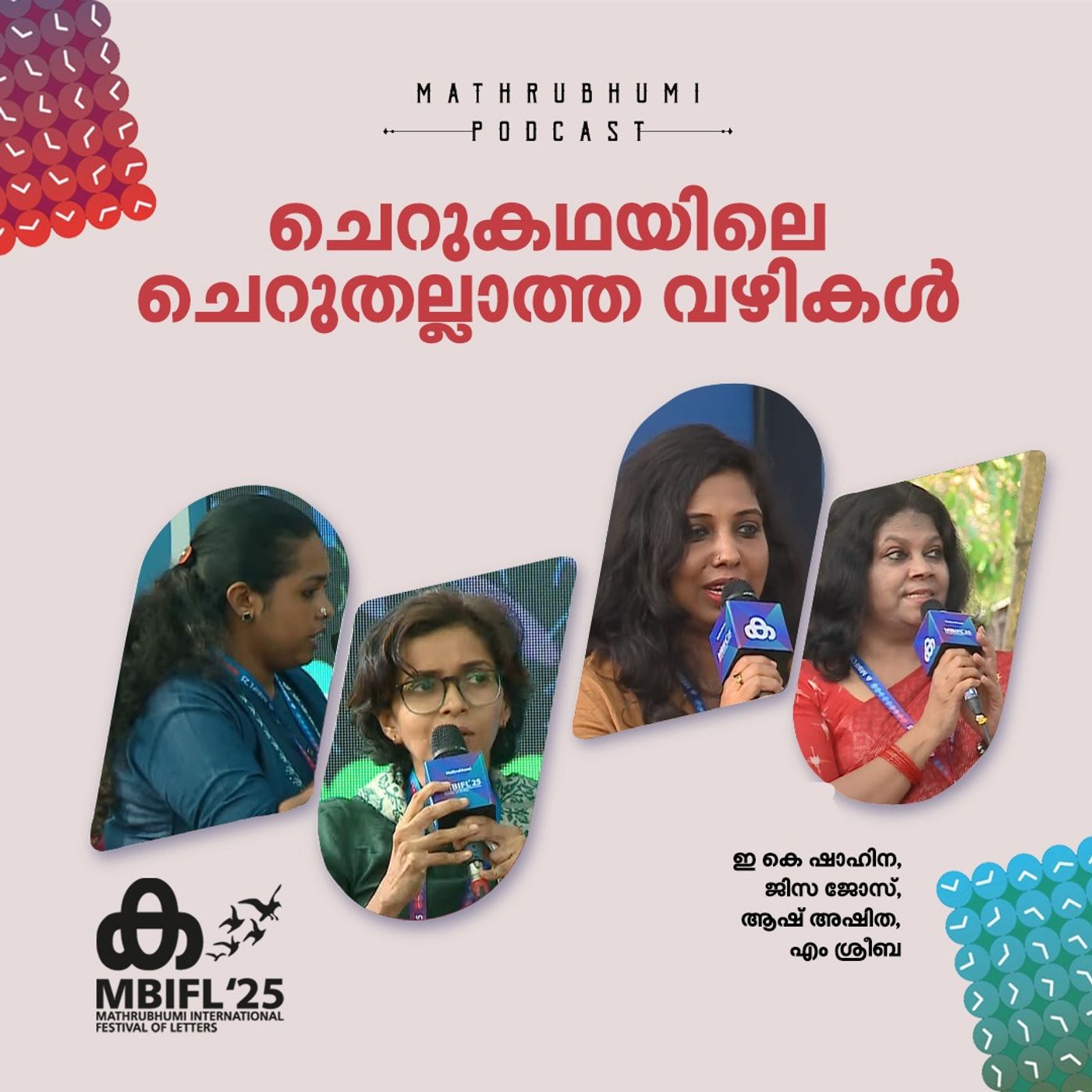മാതൃഭൂമി അന്താരാഷ്ട്ര അക്ഷരോത്സവത്തിൽ 'ചെറുകഥയിലെ ചെറുതല്ലാത്ത വഴികൾ' എന്ന സെഷനിൽ ഇ കെ ഷാഹിന, ജിസ ജോസ്, ആഷ് അഷിത, എം ശ്രീബ എന്നിവർ സംസാരിക്കുന്നു.