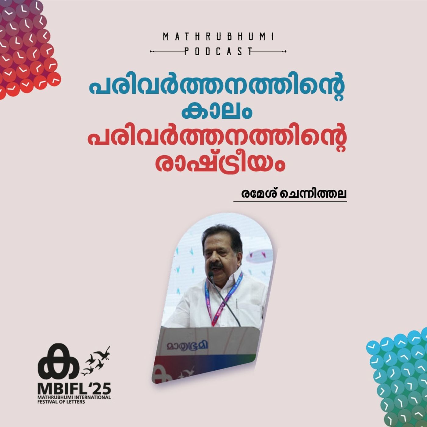മാതൃഭൂമി അന്താരാഷ്ട്ര അക്ഷരോത്സവത്തിലെ 'പരിവര്ത്തനത്തിന്റെ കാലം, പരിവര്ത്തനത്തിന്റെ രാഷ്ട്രീയം' എന്ന സെഷനില് രമേശ് ചെന്നിത്തല സംസാരിക്കുന്നു. സൗണ്ട് മിക്സിങ്: എസ്.സുന്ദര്