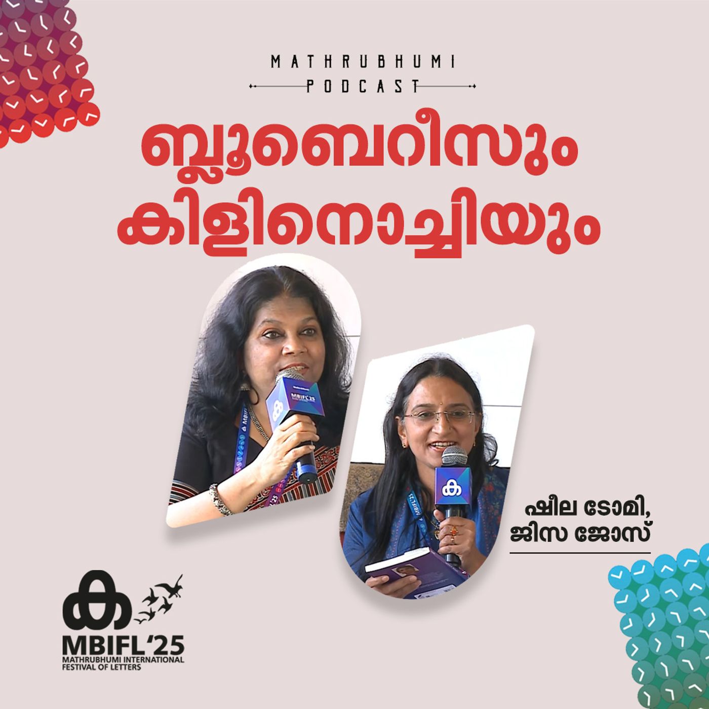 മാതൃഭൂമി അന്താരാഷ്ട്ര അക്ഷരോത്സവത്തിലെ ബ്ളൂബെറീസും കിളിനൊച്ചിയും എന്ന സെഷനിൽ ഷീല ടോമി, ജിസ ജോസ് എന്നിവർ സംസാരിക്കുന്നു