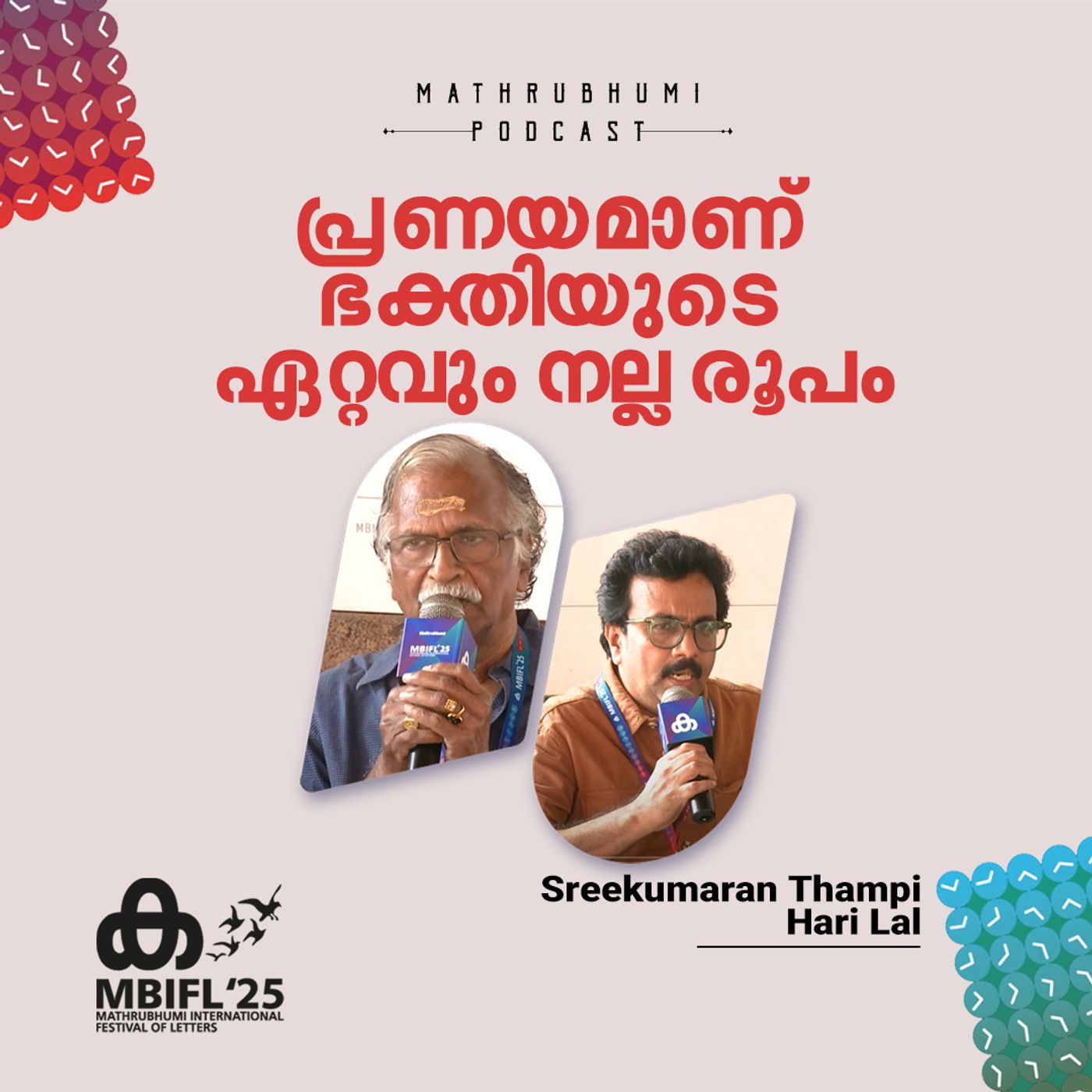 മാതൃഭൂമി അന്താരാഷ്ട്ര അക്ഷരോത്സവത്തിലെ 'ഹൃദയസരസ്സ്' എന്ന സെഷനില് ശ്രീകുമാരന് തമ്പി സംസാരിക്കുന്നു. ഹോസ്റ്റ്: ഹരിലാല് രാജഗോപാല്. സൗണ്ട് മിക്സിങ്: എസ്.സുന്ദര്