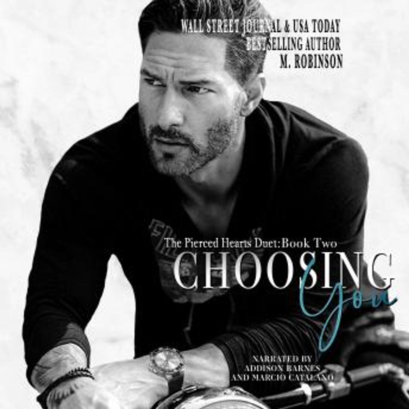 Please visit https://thebookvoice.com/podcasts/1/audiobook/444885 to listen full audiobooks. Title: Choosing You Series: #2 of The Pierced Hearts Duet Author: M. Robinson Narrator: Addison Barnes, Marcio Catalano Format: Unabridged Audiobook Length: 6 hours 55 minutes Release date: April 7, 2020 Genres: Modern Publisher's Summary: From Wall Street Journal and USA Today Bestselling Author M. Robinson A single glance. A fleeting moment. A solitary touch could make everything worth it. This was my breaking point. This was where I lost myself completely. I did the only thing that made sense. The only thing I had left to give. I begged her … To take me with her.