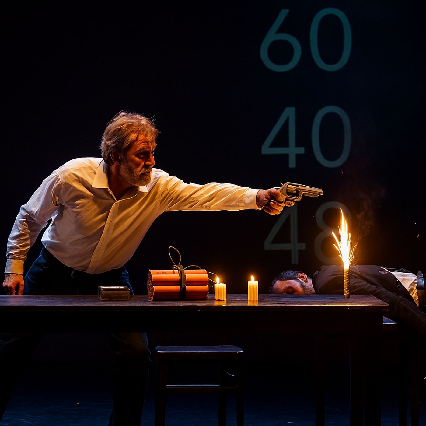 Personaggi e doppio identitario Sator e Rotor funzionano come due facce di un unico soggetto: Sator è il lato riflessivo, nostalgico e vulnerabile; Rotor è la voce cinica, violenta e performativa. Il fatto che siano interpretati dallo stesso attore crea un effetto di scissione psicologica sul palco, suggerendo conflitto interno, maschere sociali e la possibilità di autoannientamento o autodifesa. La trasformazione fisica (caduta, buio, rialzarsi con pistola) segna il passaggio da confessione a giudizio, da dolore a condanna.