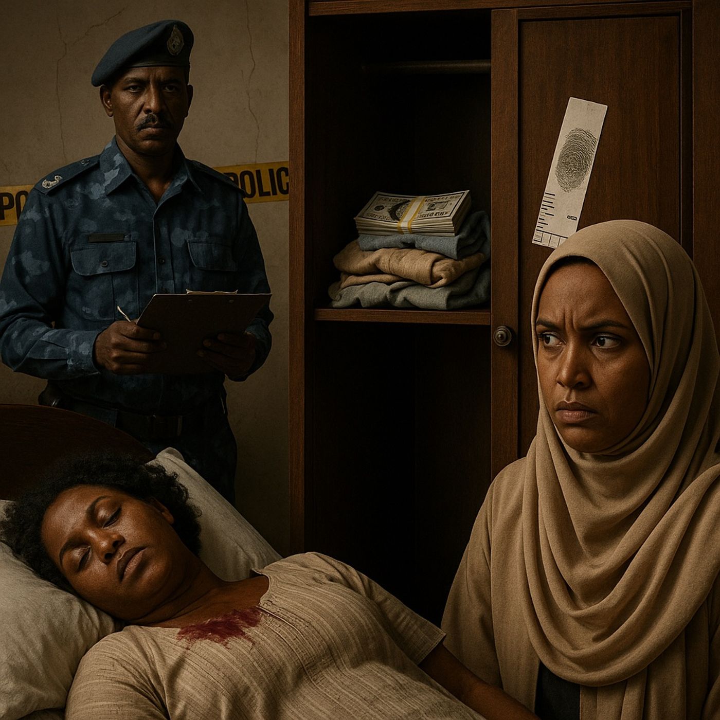 A homicide investigation in Sudan involving the murder of Amna Al-Sharif, wife of a prominent businessman. She was found strangled in her bedroom, with a large sum of money stolen from a closet, initially prompting suspicion toward the family’s maids or a recently hired carpenter. A forensics report later suggested the theft was staged, shifting suspicion to the victim’s daughter-in-law, Dr. Ryan Mukhtar, a gynecologist with pre-existing conflicts with her mother-in-law. Motivated by threats of divorce, Mukhtar planned the murder to frame others but was caught due to inconsistencies in her statements and a fingerprint on the closet. She ultimately confessed and was sentenced to death, while her sister received a prison sentence for aiding in the cover-up.