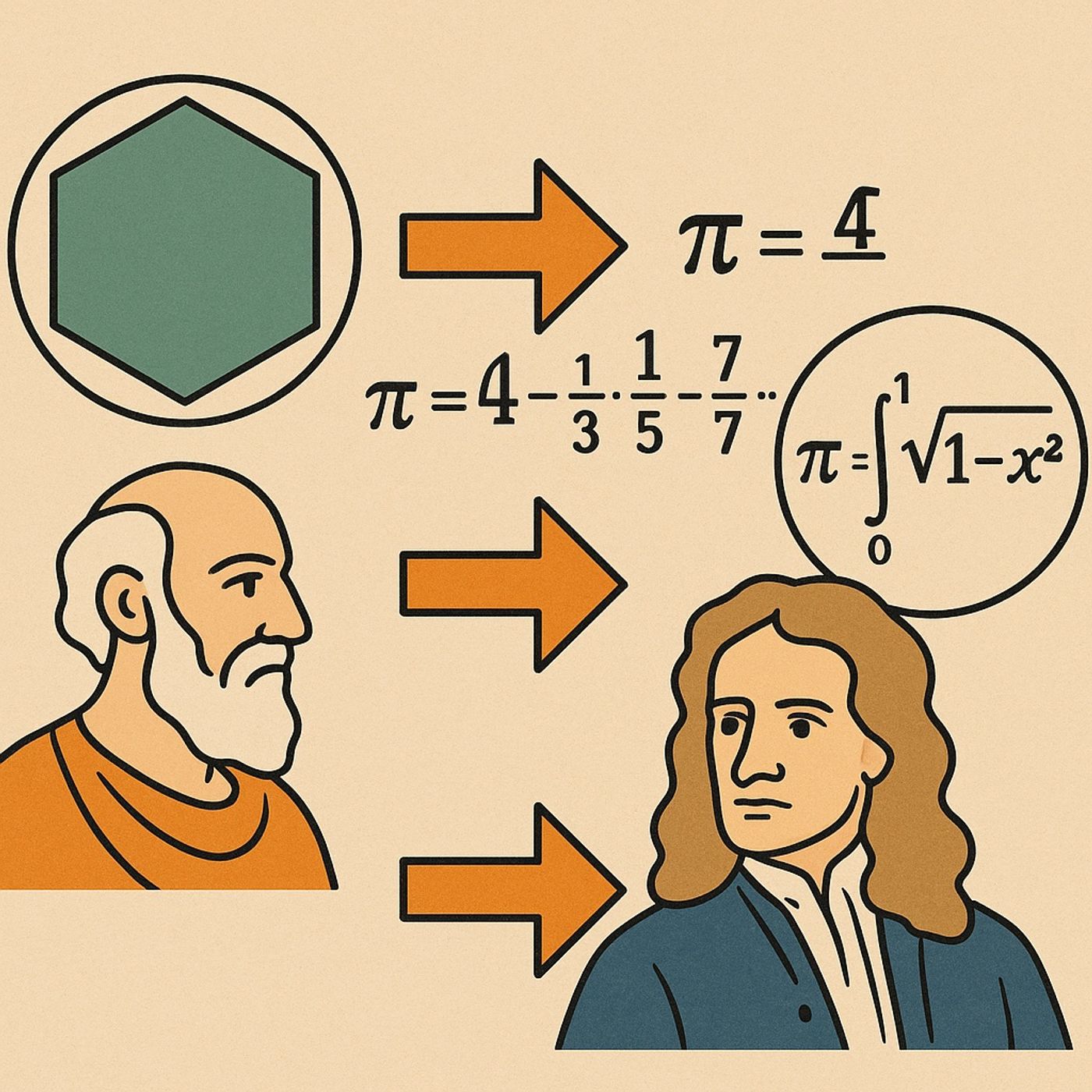 التطور التاريخي لطرق حساب قيمة ط (باي)، بدءًا من الأساليب القديمة التي استخدمها علماء مثل أرخميدس، والتي اعتمدت على تقريب الدائرة باستخدام المضلعات للحصول على نتائج أكثر دقة بمرور الوقت، رغم بطئها الشديد. لاحقًا، أحدث إسحاق نيوتن تحولًا كبيرًا في هذا المجال عبر توسيع نظرية ذات الحدين لتشمل الأسس الكسرية والسالبة، مما أتاح توليد متسلسلات لا نهائية يمكن من خلالها حساب الجذور التربيعية والقيم التقريبية لعدد ط. ثم استخدم نيوتن حساب التفاضل والتكامل الذي ابتكره لدمج هذه المتسلسلات الناتجة من معادلة الدائرة، وهو ما مكّنه من الوصول إلى قيمة ط بدقة وسرعة غير مسبوقتين، فاتحًا الباب أمام طرق رياضية أكثر كفاءة لحسابها في العصور اللاحقة.