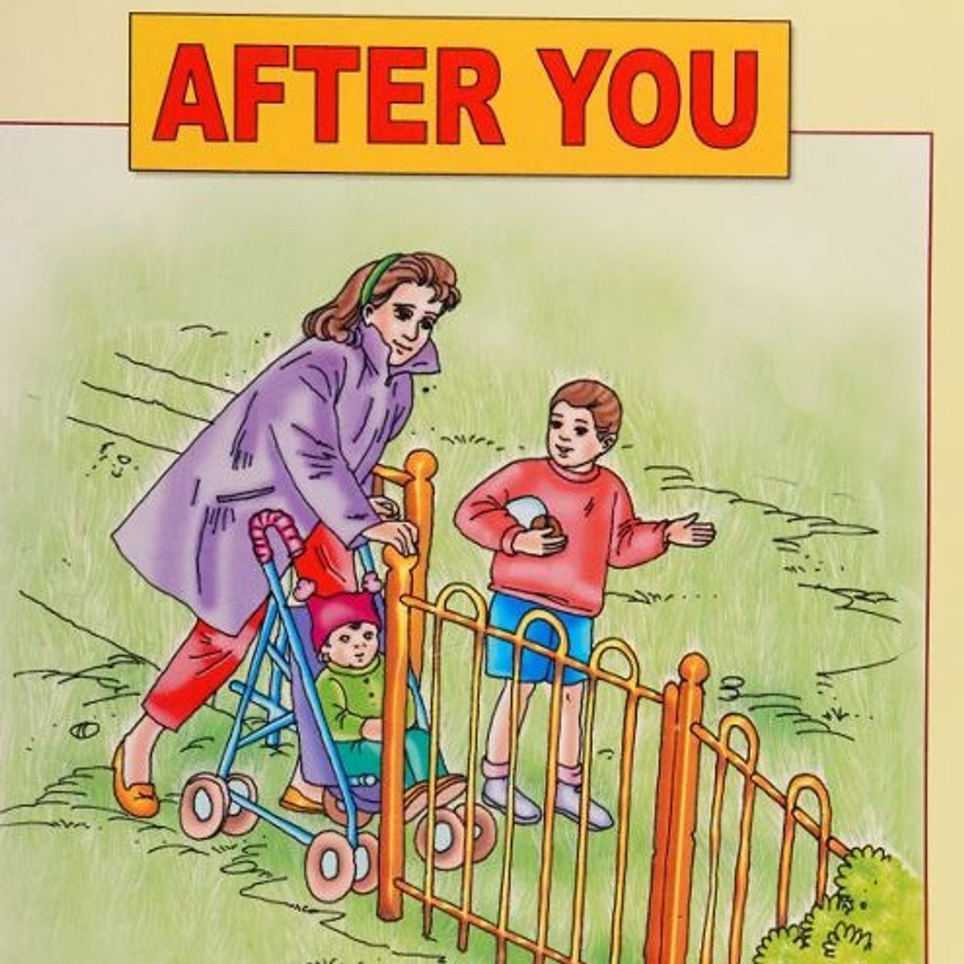 This educational children's book published by Dreamland Publications is the sixth entry in a series designed to instill social etiquette and moral values in young readers. Through three distinct illustrated stories, the text emphasizes the importance of patience, politeness, and deference to others. One narrative highlights the value of respecting elders at a park entrance, while another demonstrates how taking turns during an art competition prevents accidents. The final story focuses on waiting in line at a store, teaching children to resist the urge to rush ahead of those who were there first. Ultimately, the collection serves as a guide for building virtuous character by encouraging children to use the phrase and mindset of "after you" in their daily interactions.