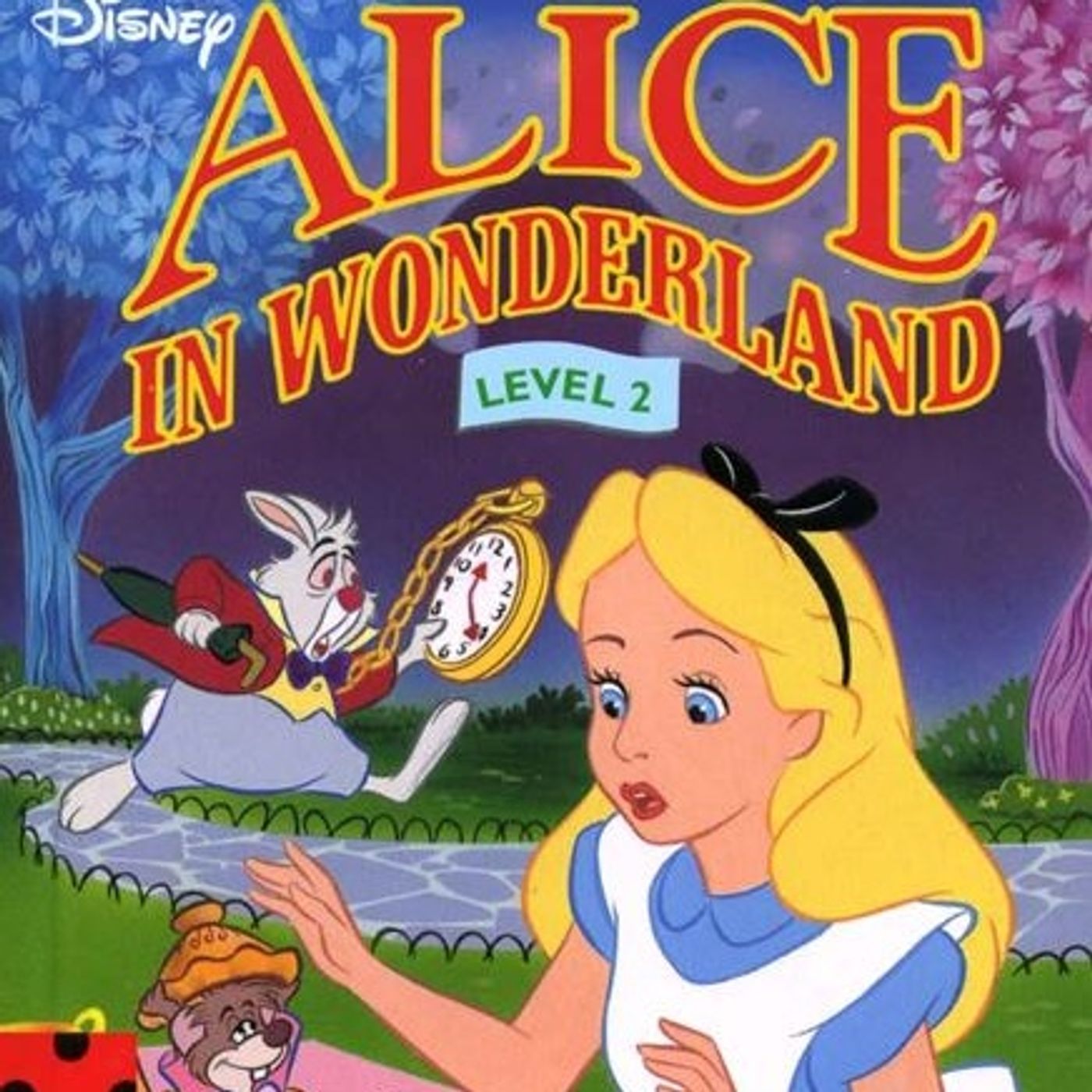 The narrative captures key moments from the story, including her encounter with the White Rabbit, her physical transformations caused by magical food, and her confrontation with the Queen of Hearts. Vivid Disney illustrations accompany the text to provide visual context for young learners as they progress through the plot. Ultimately, the story concludes with Alice discovering that her surreal experiences were merely a dream. The book serves as part of a graded reading series intended to build confidence in children who are starting to read independently.