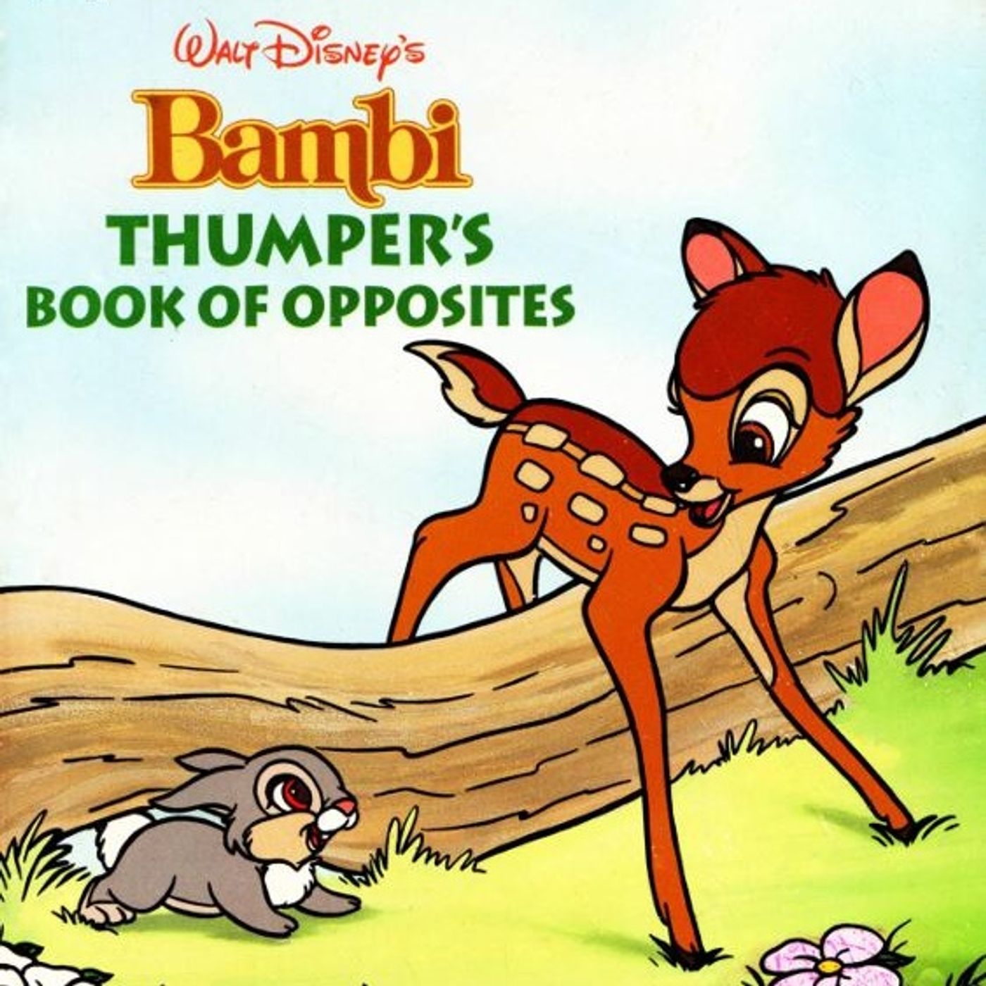 This children's board book features classic Disney characters like Bambi, Thumper, and Flower to teach foundational educational concepts. Through vibrant illustrations and simple sentences, the story demonstrates contrasting pairs such as up and down or high and low. The narrative follows these woodland friends as they interact with their environment, highlighting physical differences like long and short appendages. By using familiar animals and a playful tone, the book aims to help toddlers grasp basic vocabulary and spatial relationships.