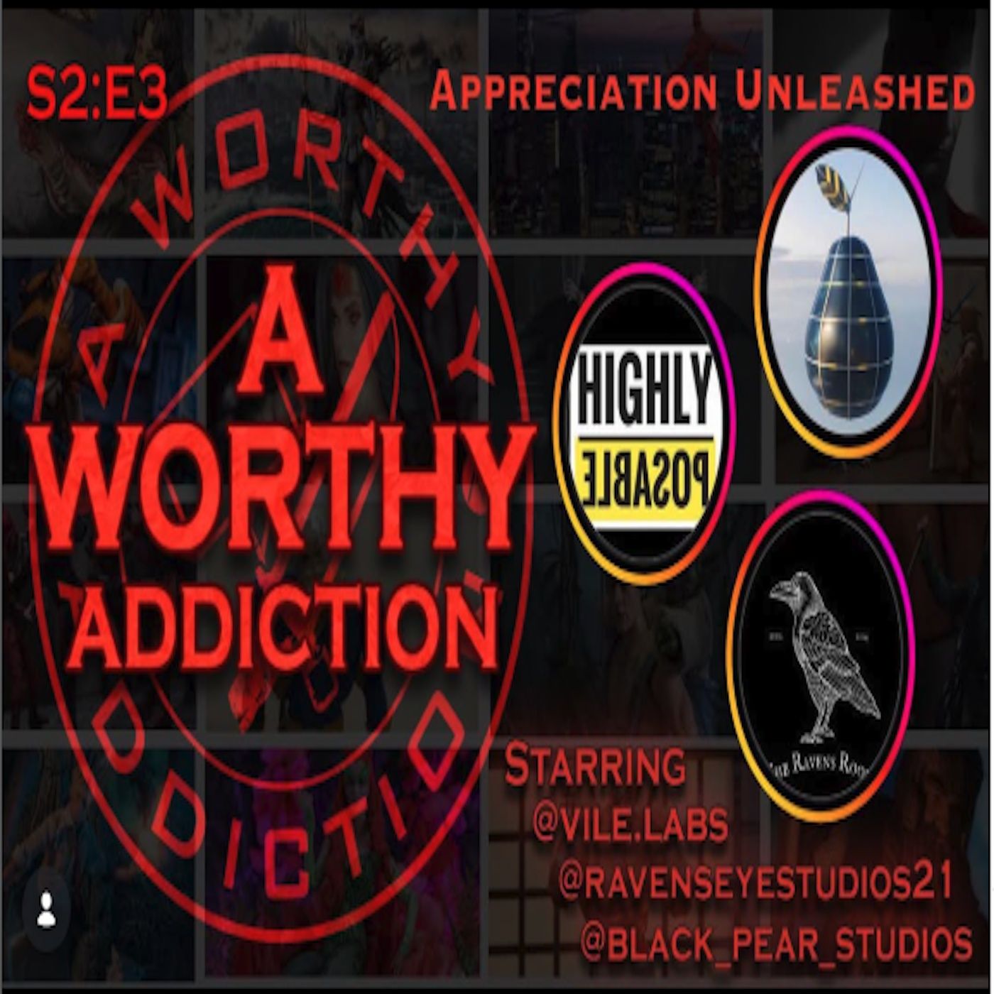 On this episode of A Worthy Addiction, The Rowdy Boyz are joined by some heavy hitters in the business of appreciating all the hard work from across the toy photography community. Vile Labs from @highlyposable, Black Pear Studios from IG, and Ravens Eye from Ravens Roost! Listen in as they tell their stories behind their introduction to the community, and why spreading the love across the community is so important to them. This is sure to be an exciting episode, don’t miss out!