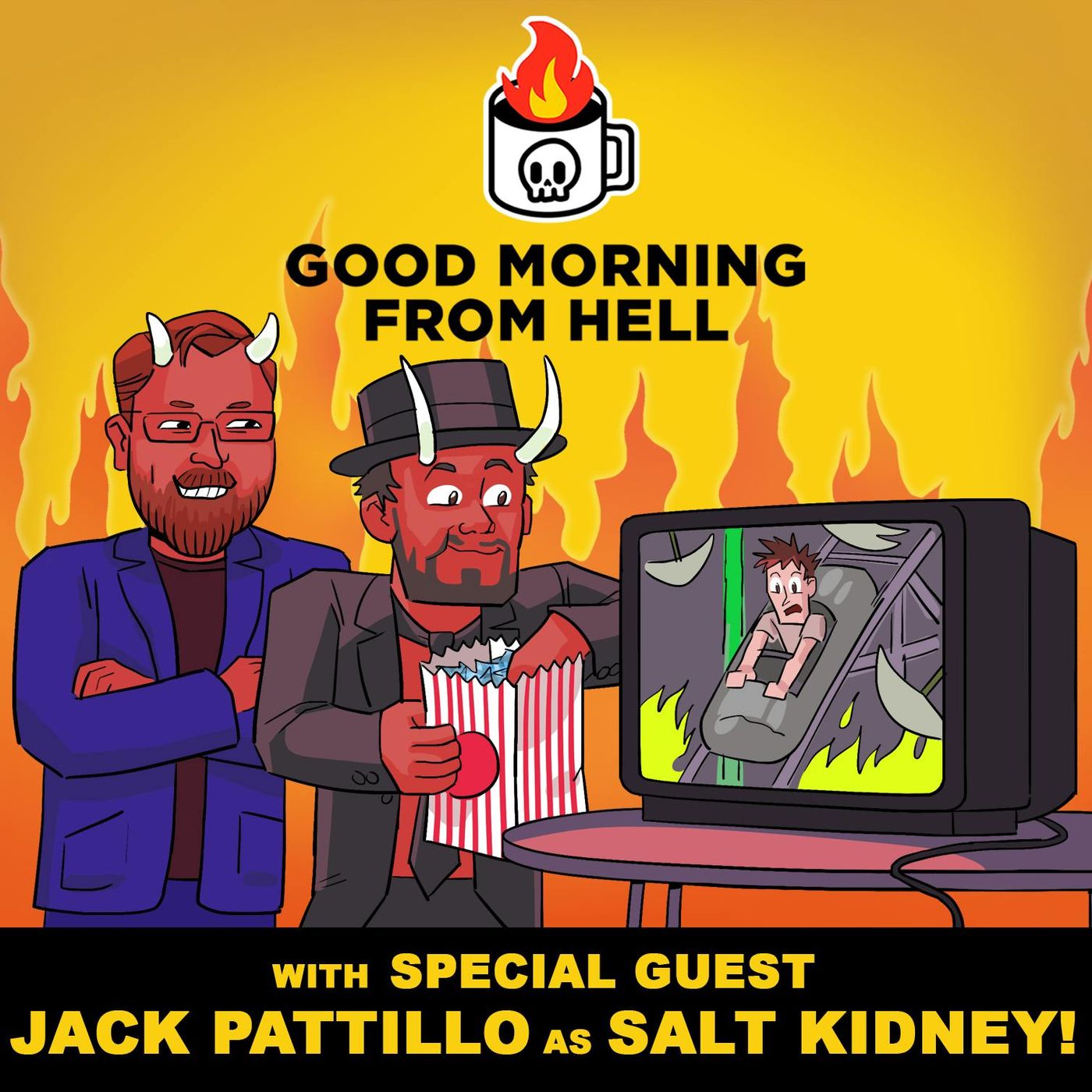 Clayton has a chat with the eccentric theme park entrepreneur Salt Kidney at the infamous 666 flags as Chris "enjoys" the attractions. Special guest Salt Kidney played by Jack Patillo of Achievement Hunter. You can listen to Jack's new theme park podcast "Annual Pass" on all podcasting platforms! Join our Hatreon to support the show and get exclusive content at goodmorningfromhell.com!