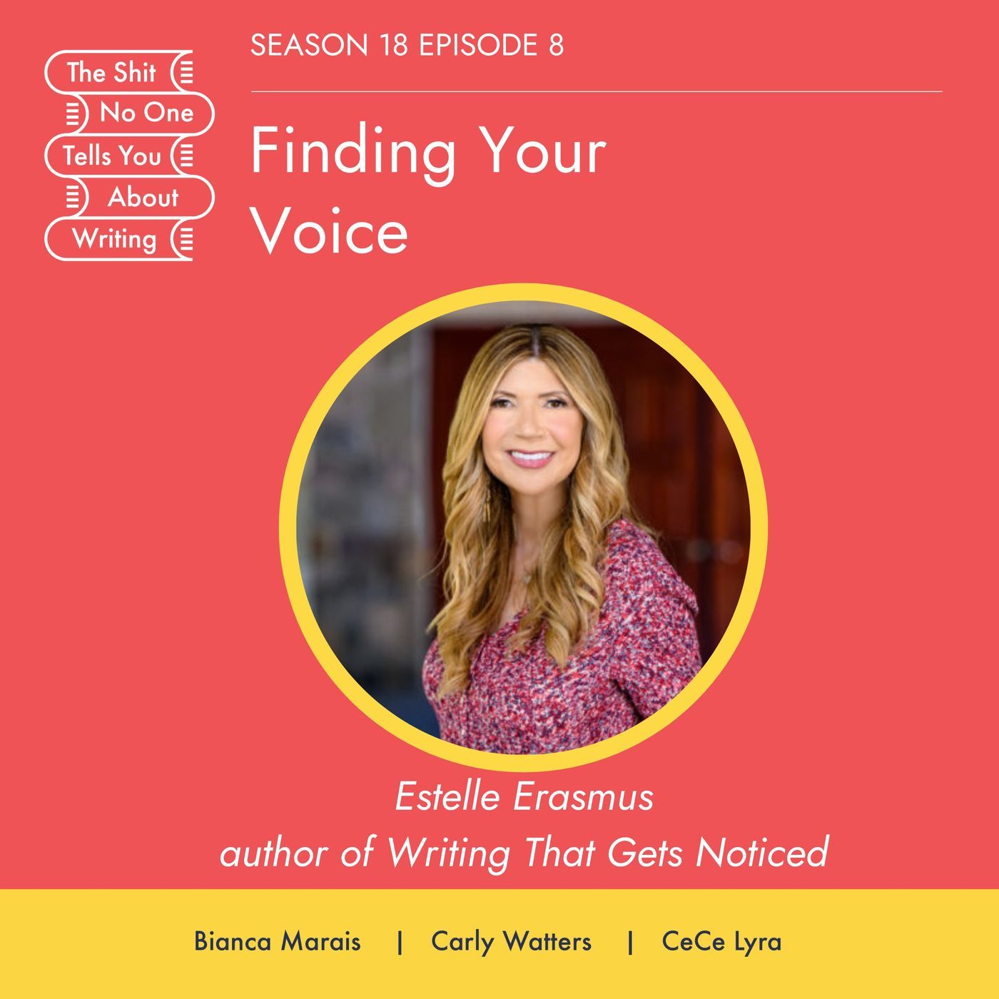 In today's Books with Hooks, Bianca, Carly, and CeCe discuss an example of an excellent hook and query letter in general; the issues with beginning your novel with a cliched scene; the importance of emotional layers in interiority, especially with big, messy emotions; framing your query letter in a way that gives your protagonist more agency and 'protagonism', or that shows how a character's lack of agency pushes the plot forward; the problem with using self-published books as your comp titles; the difference between third person close POV and omniscient third person; and the difficulties with using an omniscient third person POV.After which, Bianca chats with Estelle Erasmus about her book, Writing That Gets Noticed. They also discuss Estelle’s credentials and experience; writing essays and op-eds; finding your voice; writing your essays for yourself; literary fiction vs purple prose; finding your rhythm and syntax; asking yourself “so what?”; personal universal elements; and revealing vs concealing. Find us on our socials:Twitter: @TSNOTYAW @BiancaM_author @carlywatters @ceciliaclyraInstagram: https://www.instagram.com/the_shit_about_writing/ https://www.instagram.com/biancamarais_author/https://www.instagram.com/carlywatters/ https://www.instagram.com/cece_lyra_agent/Facebook: https://www.facebook.com/TSNOTYAWWebsites: www.theshitaboutwriting.com, www.biancamarais.com, www.carlywatters.com and www.cecilialyra.comBookshop.org affiliate page: https://bookshop.org/shop/theshitnoonetellsyouaboutwritingMore information about Estelle can be found at https://estelleserasmus.com/. She’s on Twitter @EstelleSErasmus, Instagram @EstelleSErasmus, TikTok @EstelleSErasmus, and Facebook @Estelle.Sobel.Erasmus.