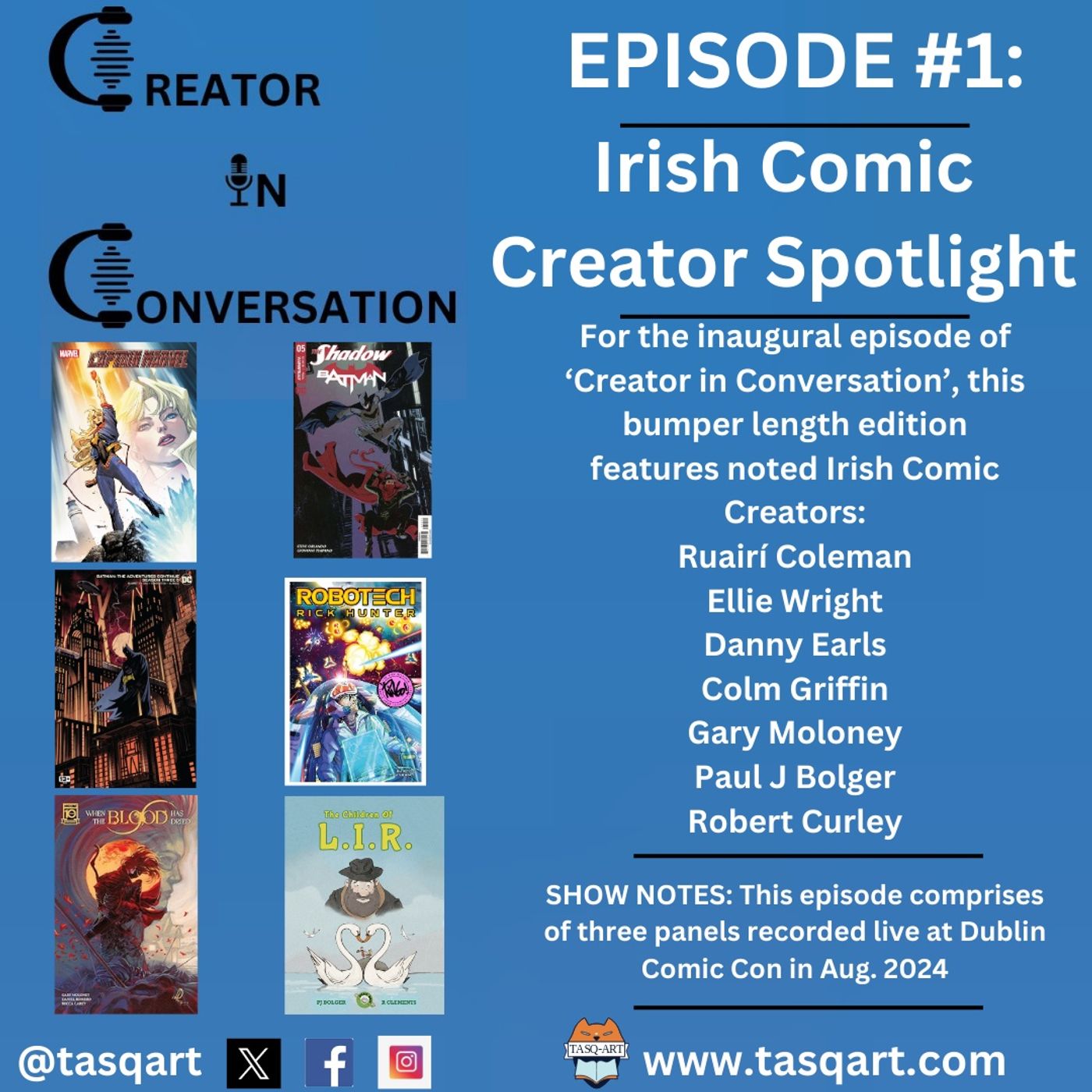 This first episode was recorded back in August 2024 as part of Dublin Comic Con before a live audience.