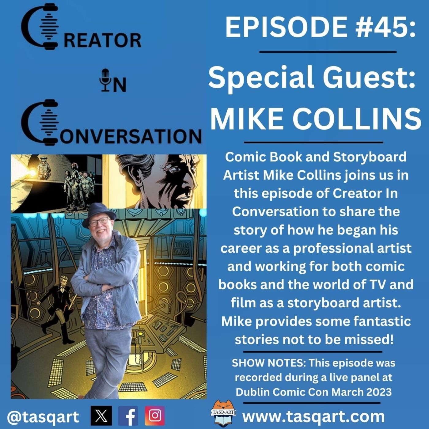 Comic Book and Storyboard Artist Mike Collins joins us in this episode of Creator In Conversation to share the story of how he began his career as a professional artist and working for both comic books and the world of TV and film as a storyboard artist. Mike provides some fantastic stories not to be missed!