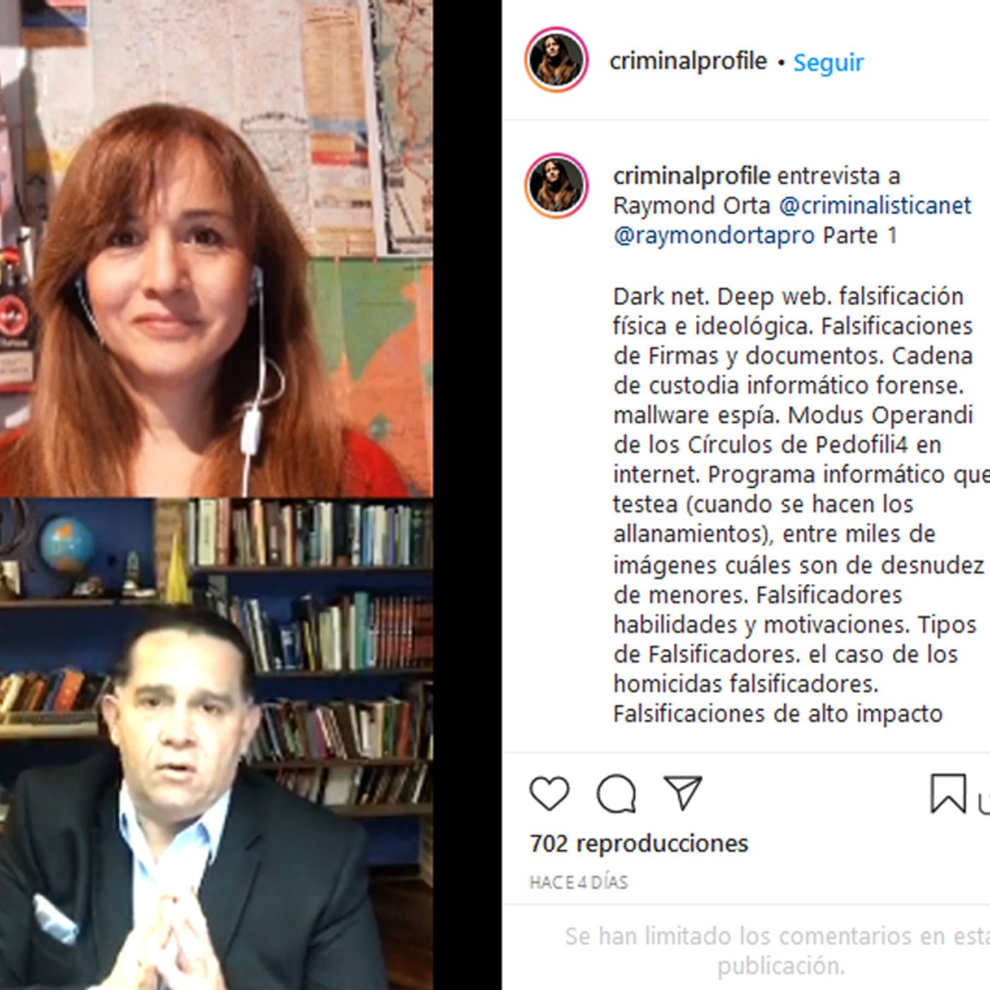 Audio del Envivo donde @criminalprofile entrevista a @RaymondOrtaPro Director de @criminalisticanet.
