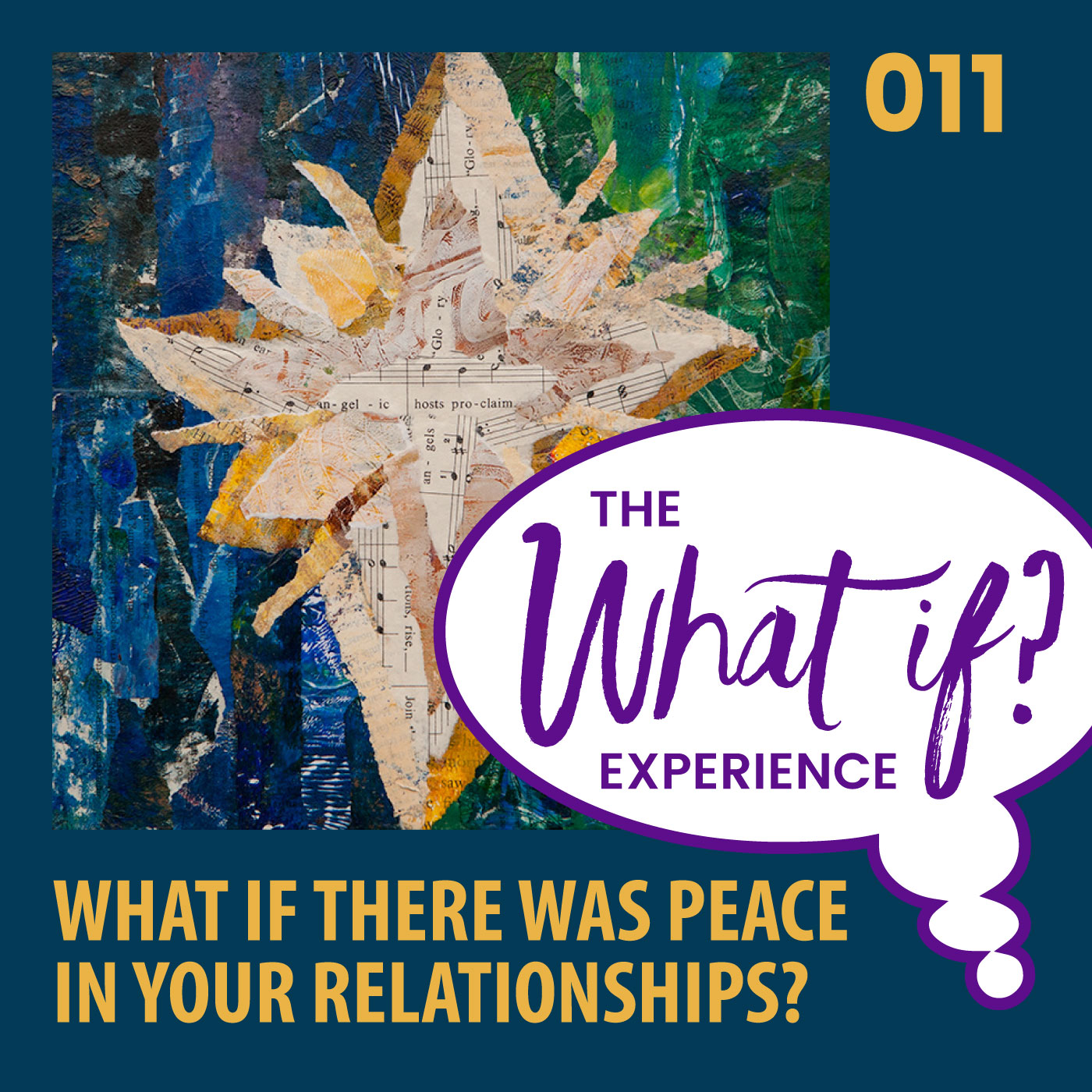 This week's artwork is a Christmas star. It stands in the center between a background of green on one side and blue on the other. The green and blue represent you and the people you're in relationship with. The star is the peace we need to place in the midst of those relationships. The star is imperfect, it's uneven, it's messy. And it's flawed. Relationships are like that too. But, when lit with the glow of peace, they can shine with beauty despite their imperfections. They're unique and special because of those imperfections.