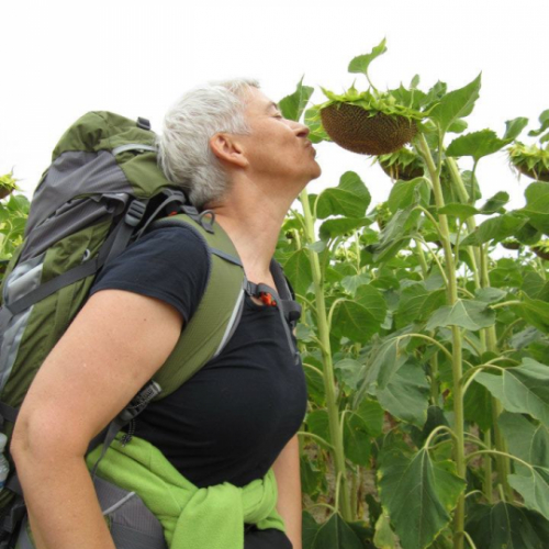 Talan er um eina sera langa ferð í Norðurspania, sum fólk oftani byrja í Suðurfraklandi og enda í Santiago de Compostela. Har verður gist á herbergum og viðførið eigur ikki at vera tungt. Kristina Christiansen gekk fyri tveimum árum síðan allan teinin einsamøll, men í ár gingu hon og dóttirin bert ein part av strekkinum. Kristina greiðir í sendingini frá ymsum áhugaverdum, til dømis at Skt Jákup er grivin stutt frá Santiago, og hví ein kirkja hevur livandi hønur í kirkjurúminum. (myndin er frá ferðini í ár).