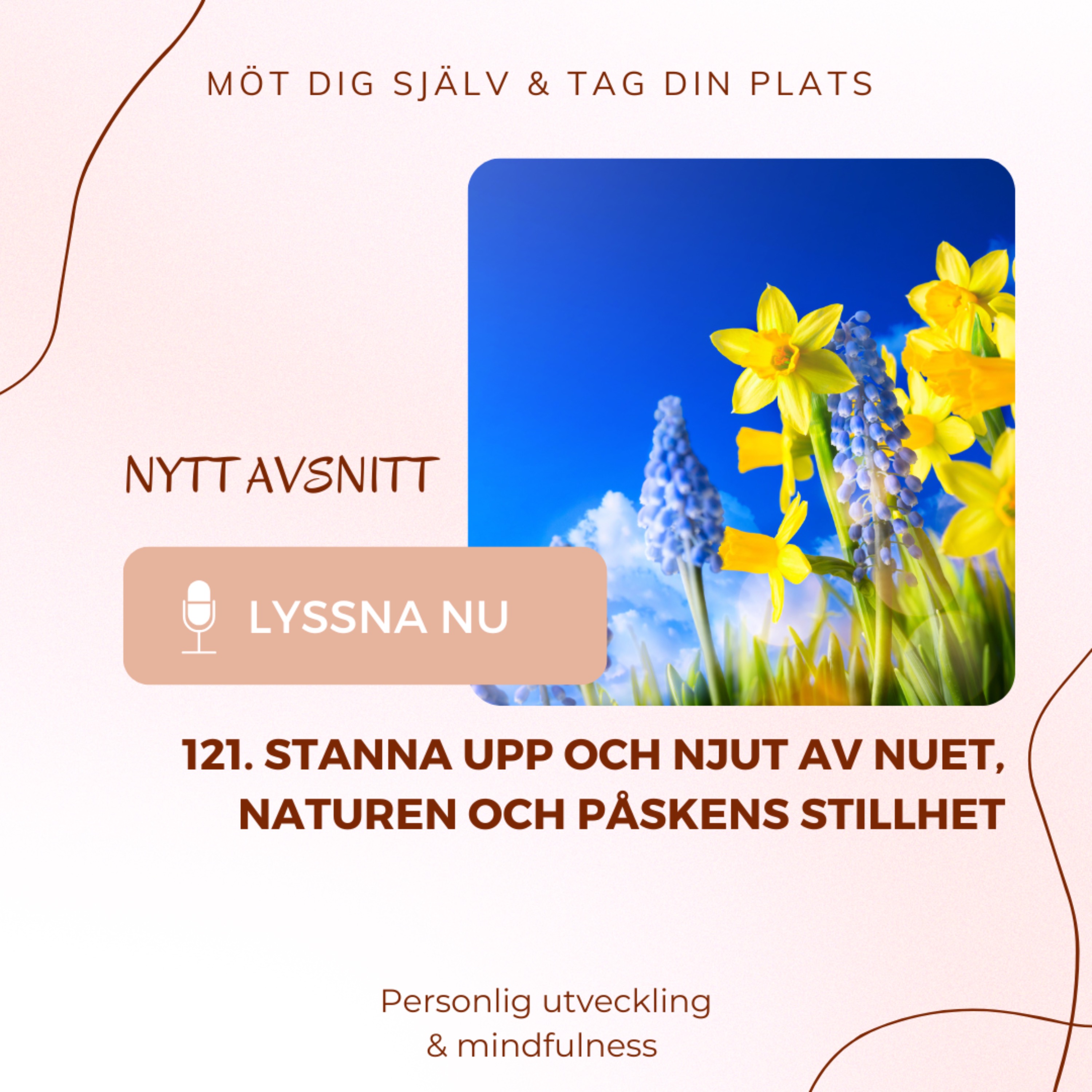 I dagens avsnitt pratar jag om påsken, som är starten för våren. Vår längtan efter att vara mera utomhus och njuta av naturen fullt ut. Det är både en helg för att fira, njuta och umgås med familj och vänner och samtidig stilla sig och skapa lugn och ro med sig själv. Jag tänker att vi behöver både och för att skapa balans i livet. Jag delar med mig av mina reflektioner och tips på hur våren och naturen kan hjälpa dig att...