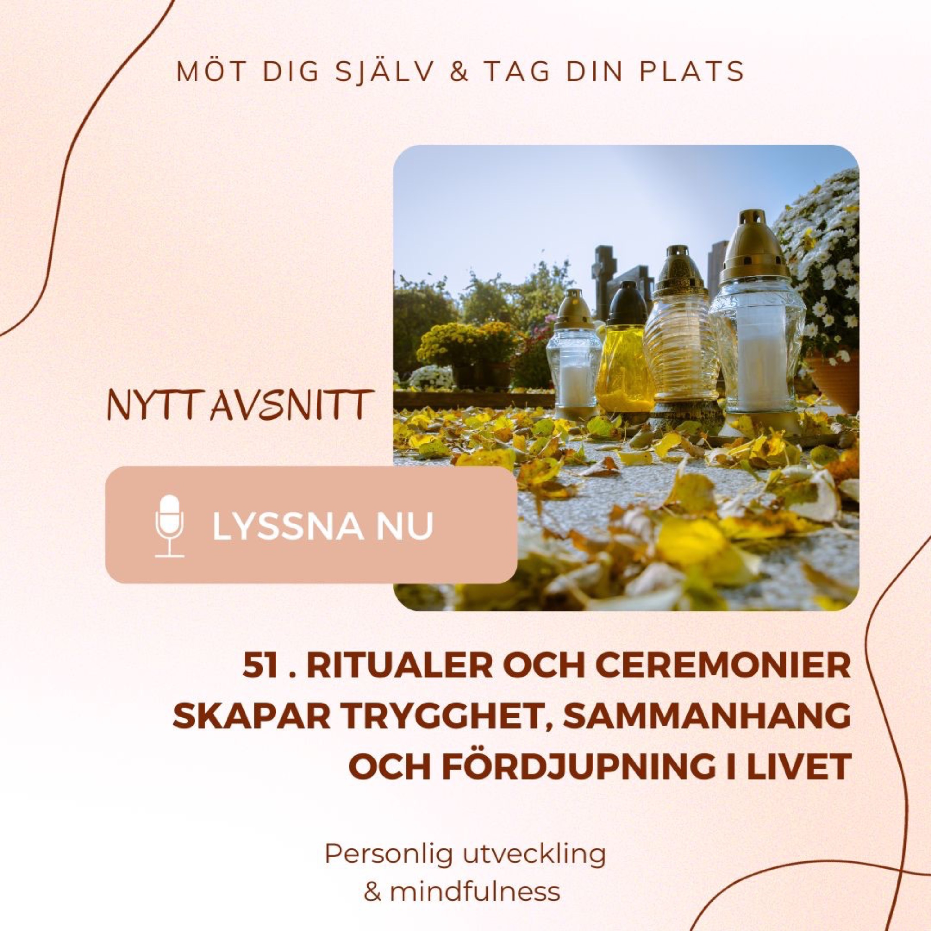Varmt välkommen hit till det här extra Bonusavsnittet, där jag bjuder in till en guidad meditation där du får landa med dig själv och träna på inre frid. En stund att gå till den platsen inom dig, där du har inre lugn och frid. Se till att du kan sitta ostört och göra det lite bekvämt för dig och ha gärna papper och penna redo när du kommer tillbaka från meditationen, för att skriva lite om det som kom till dig. Varmt välkommen...